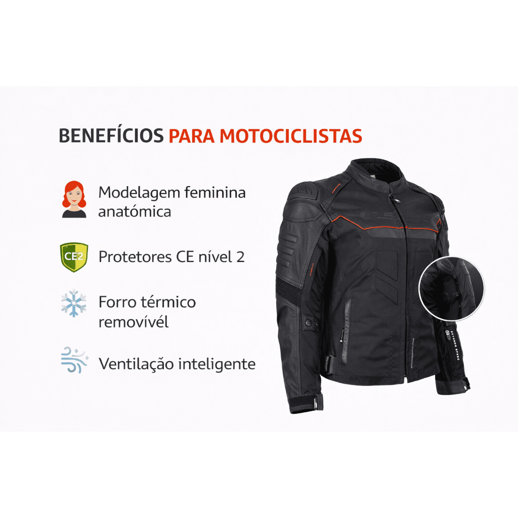 Jaqueta Feminina Texx Falcon V2 Moto Proteção Conforto Dia a Dia