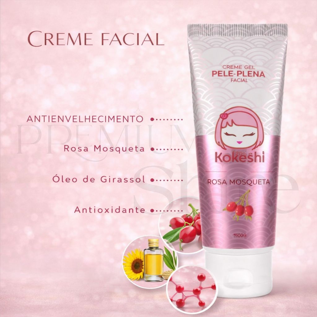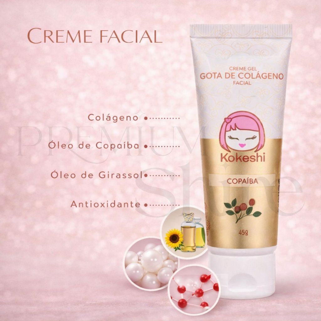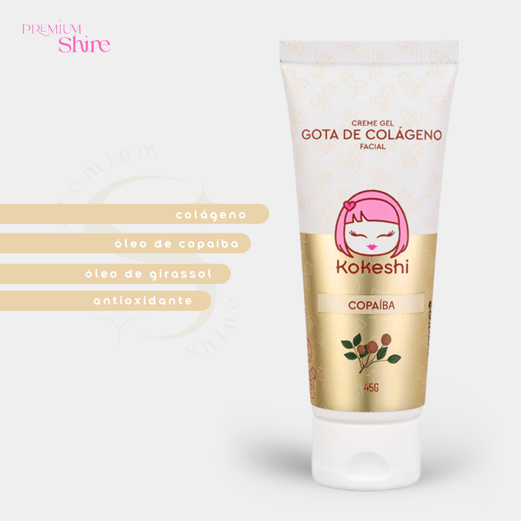 Creme Facial Gel Kokeshi 45g Antienvelhecimento Regenerador Gota de Colágeno Rosa Mosqueta Copaíba