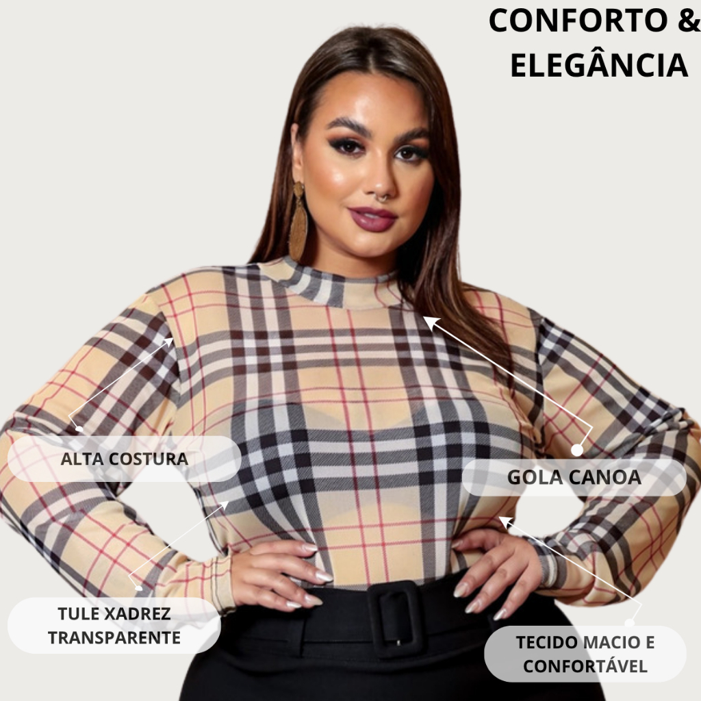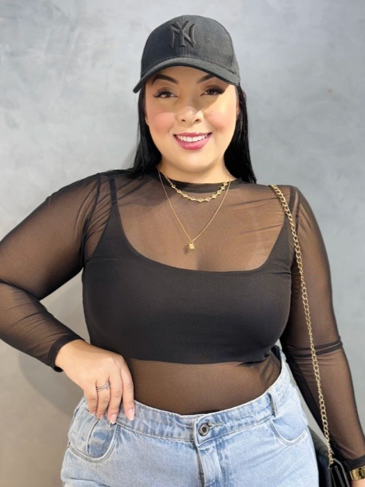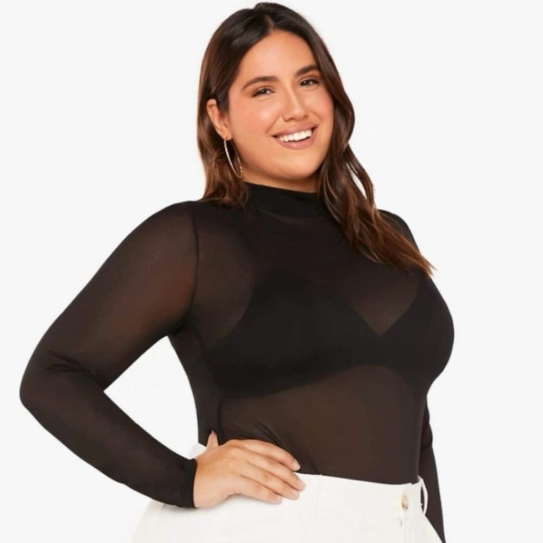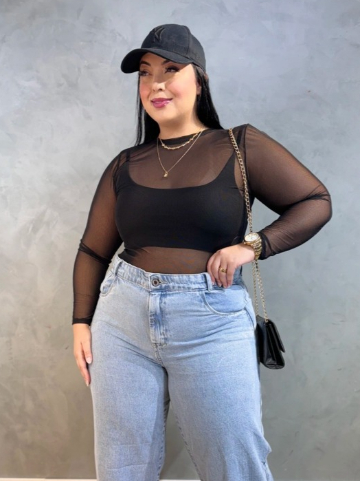 Body Feminino Plus Size Tule Básico 46 a 50 curve Tendência G1 G2 G3