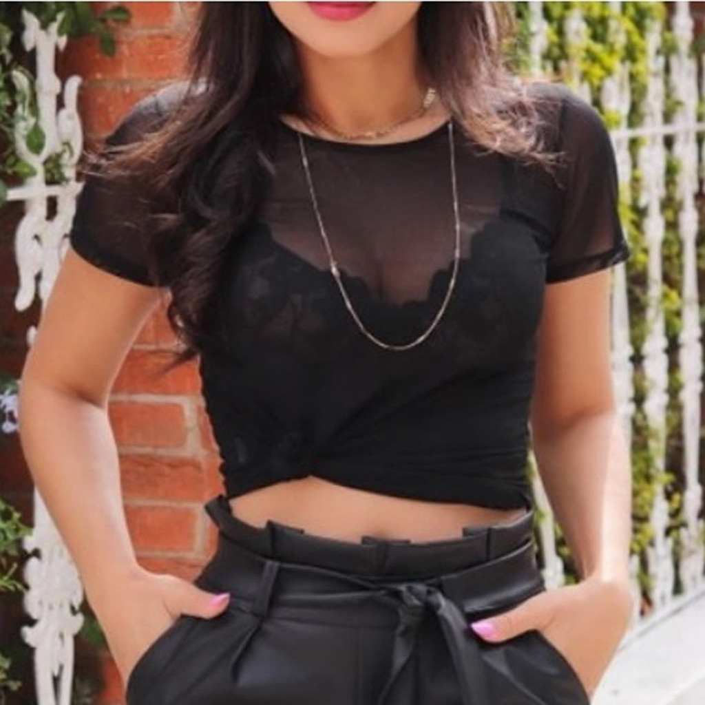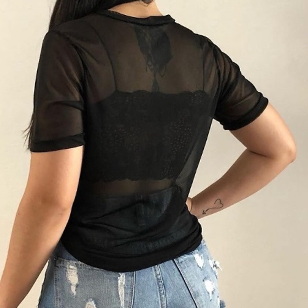 Blusa De Tule Transparente Camiseta Tshirt Manga Curta 1189c