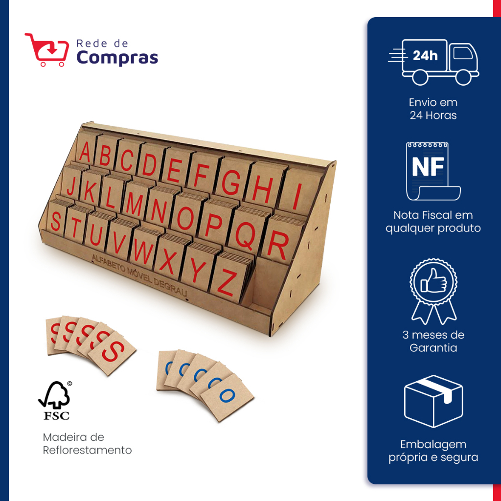 Brinquedo Educativo Para Crianças Alfabeto Móvel Degrau 130 Peças Montessoriano