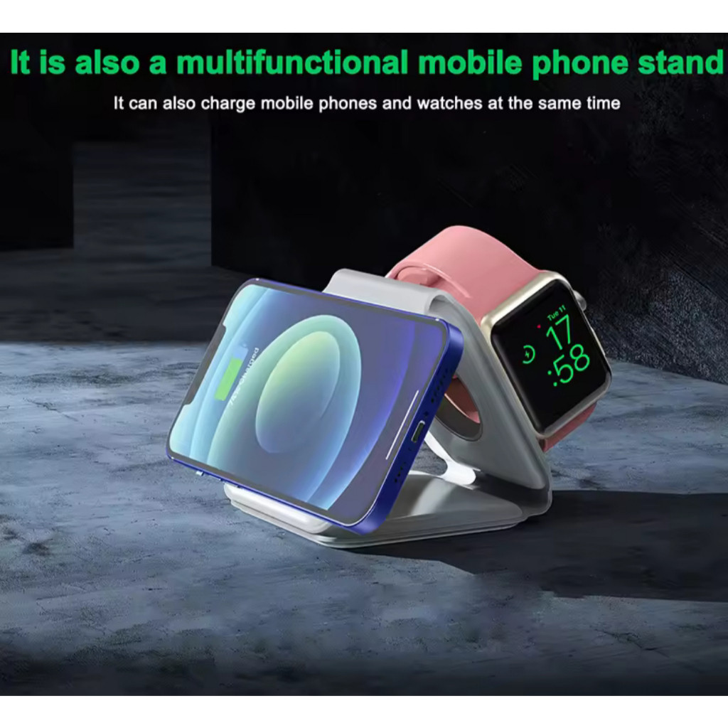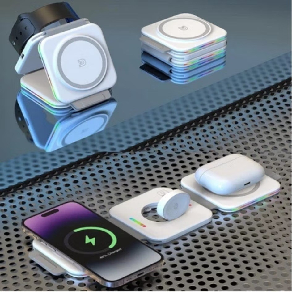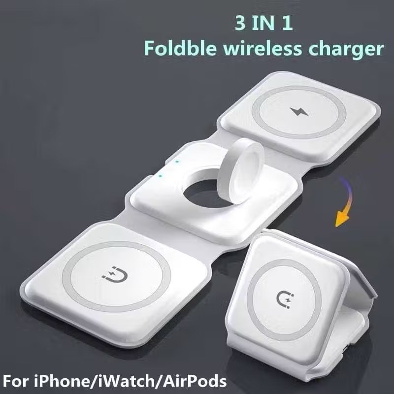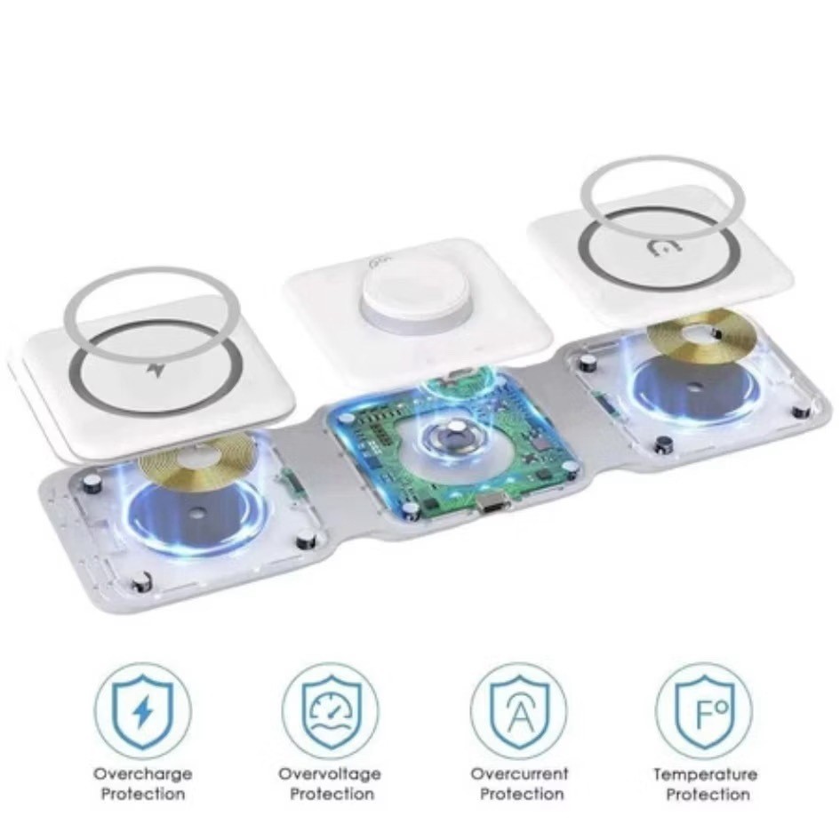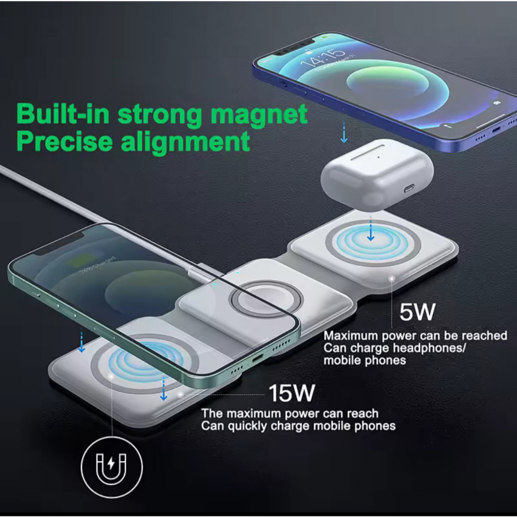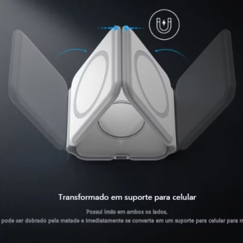 Carregador magnético sem fio 3 em 1 dobrável 15W para Celular Fone e relógio Carregamento Rápido