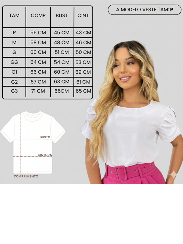 Blusa Manga princesa Curta camisa feminina blusinha plus size manga princesa elegante