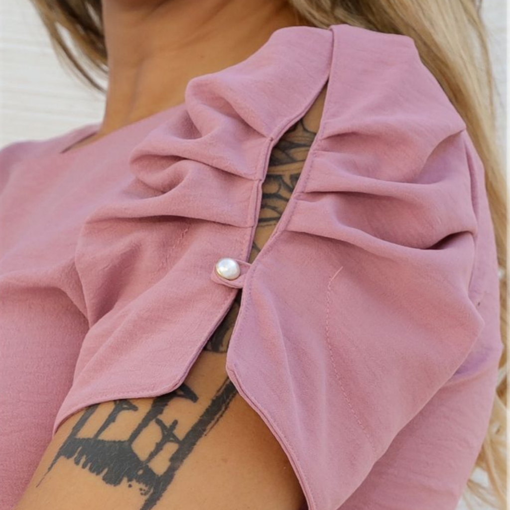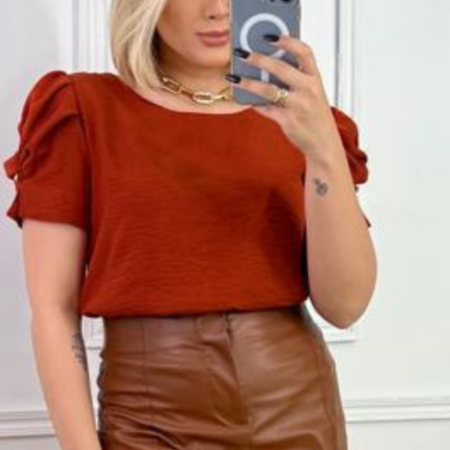 blusa elegante moda casual tecido manga curta com botão manga bufante princesa moda maior Plus size