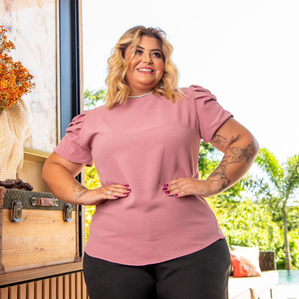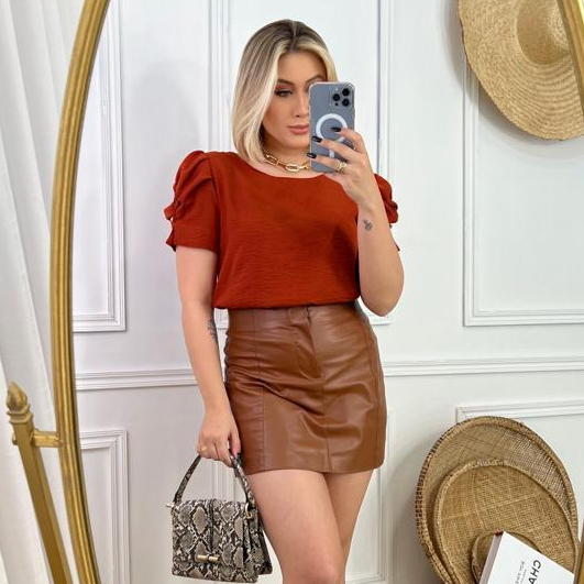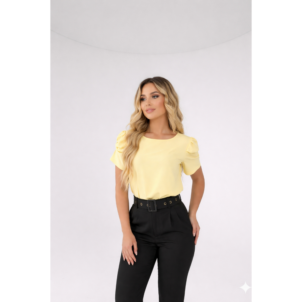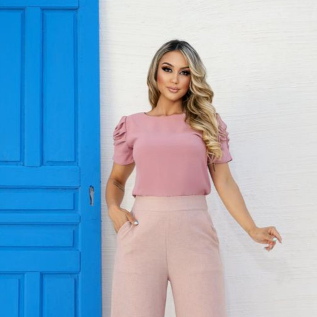 Blusa Manga Princesa Curta Tecido Dunas Moda Social Tendência