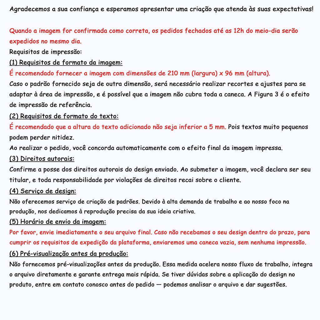 Sob encomenda: envio após 6 dias da compra