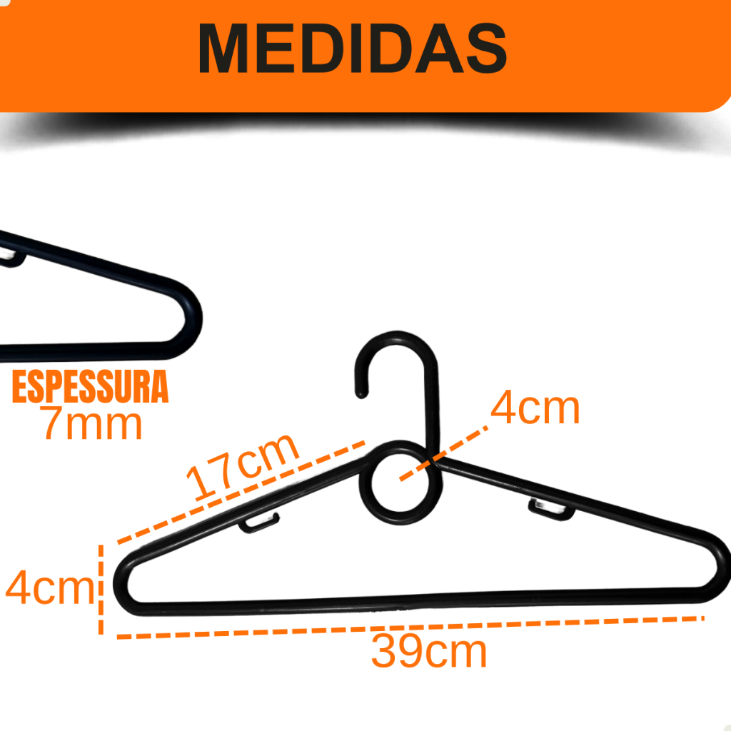 30 Unidades de Cabides Adulto Preto Reforçado
