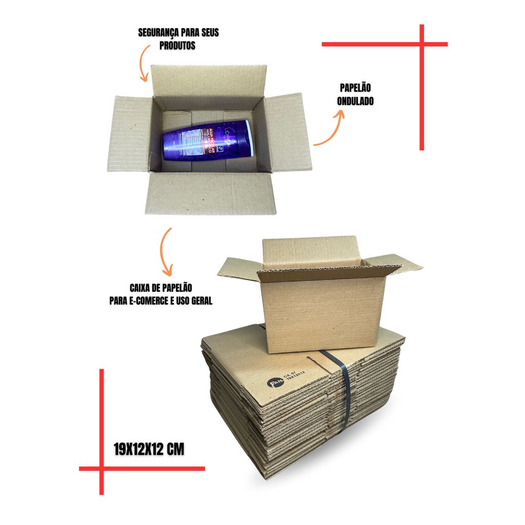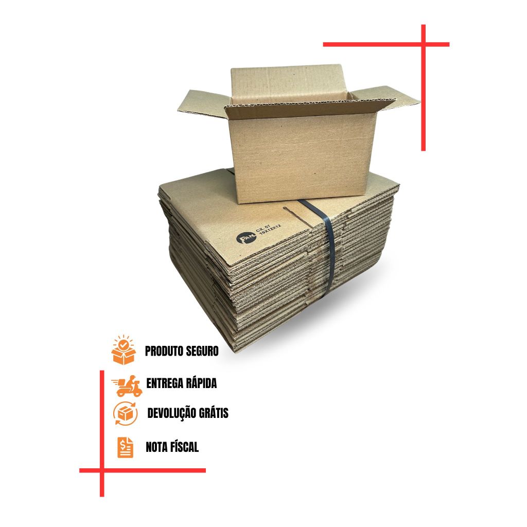 Caixas De Papelão Para Embalagens/Envio 19x12x12 Kit Com 100 Und - Correios Sedex e-commerce Pac - ENVIO IMEDIATO