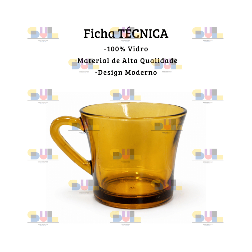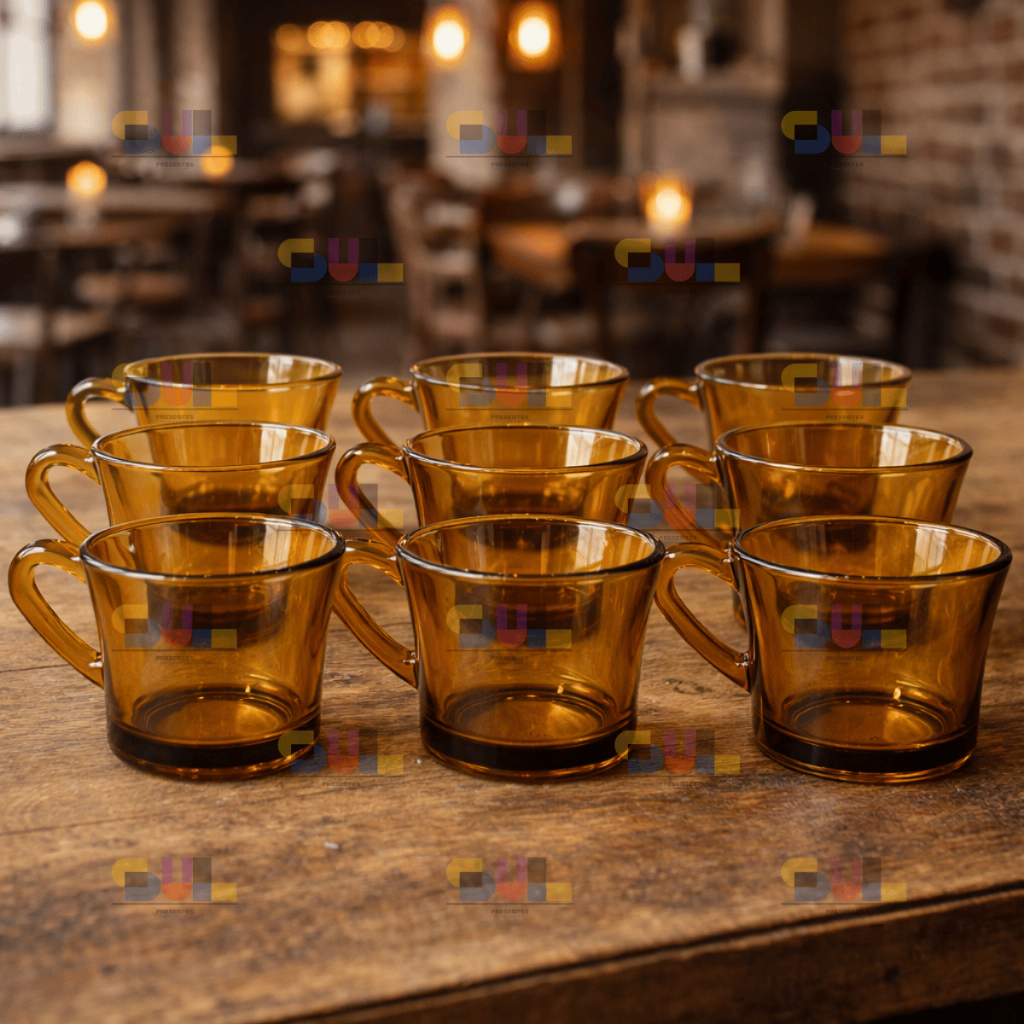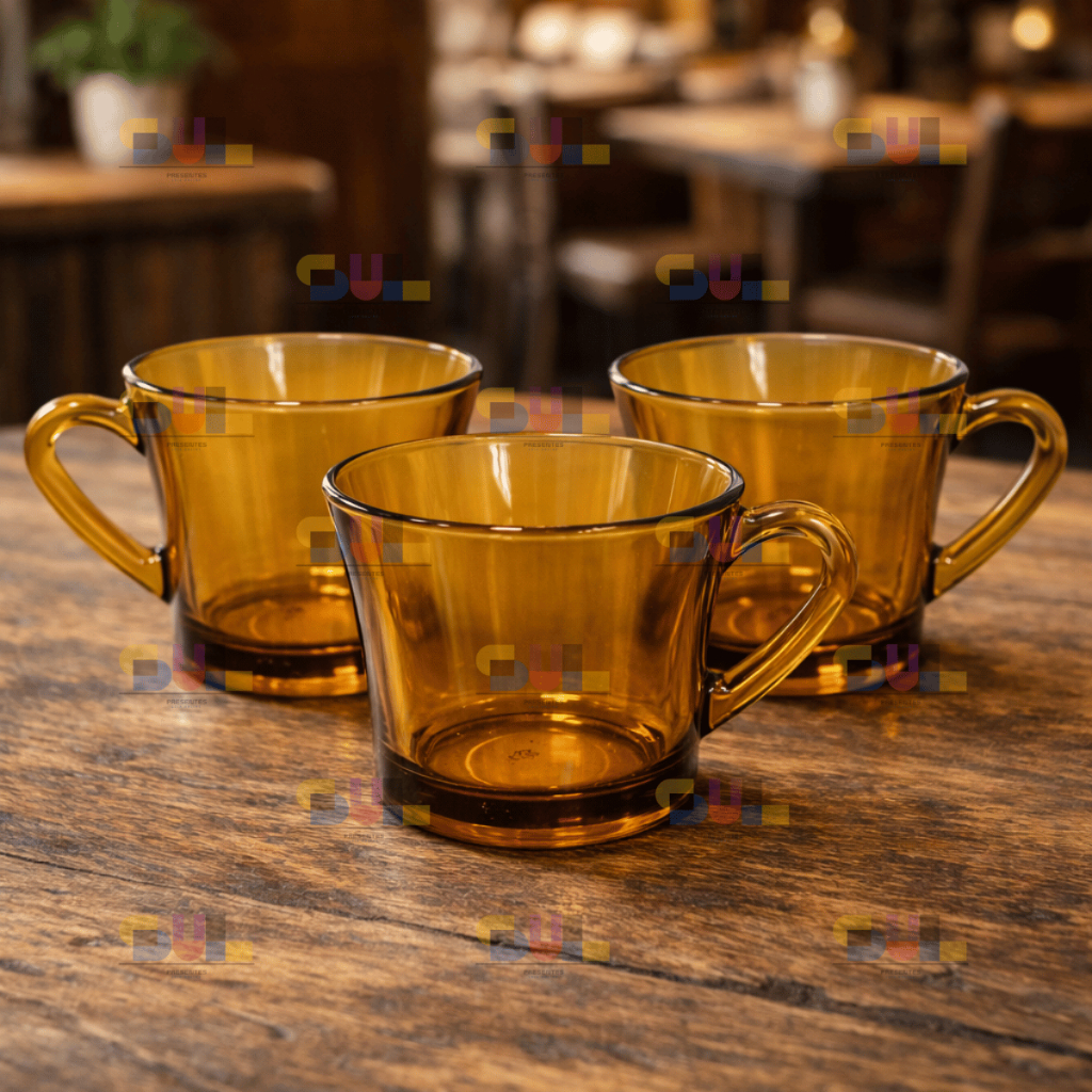 Jogo de Xicara 6 Peças Xicaras 200ml SINO AMBAR Escura Marrom Vidro Chá Café Conjunto Louça Classica