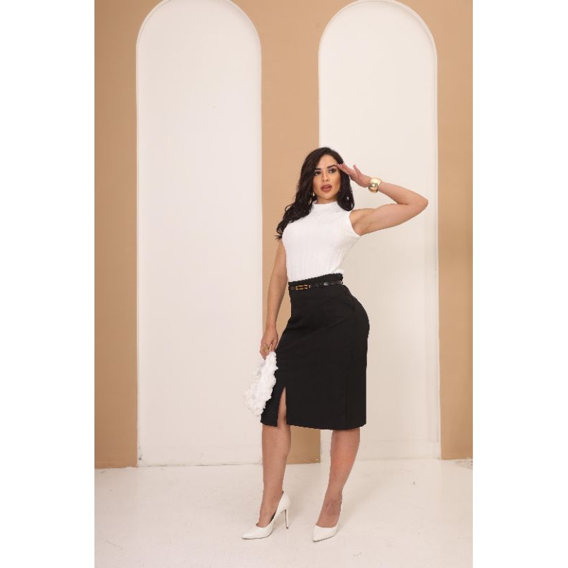 Saia feminina social em alfaiataria acompanha cinto Grátis cintura Alta Abertura na frente conforto e muito estilo 2025