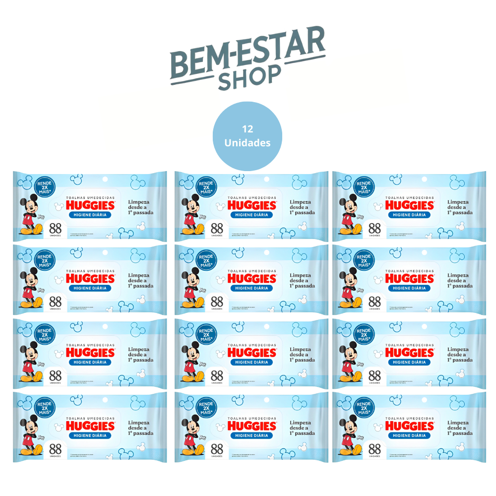 Kit com 12 pacotes de Lenço Toalhinhas Umedecidas Tripla Proteção Huggies 88 unidades cada