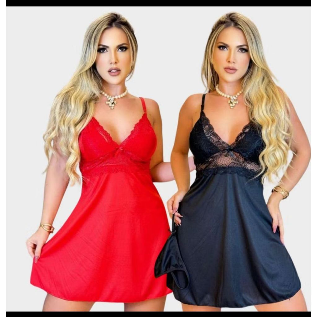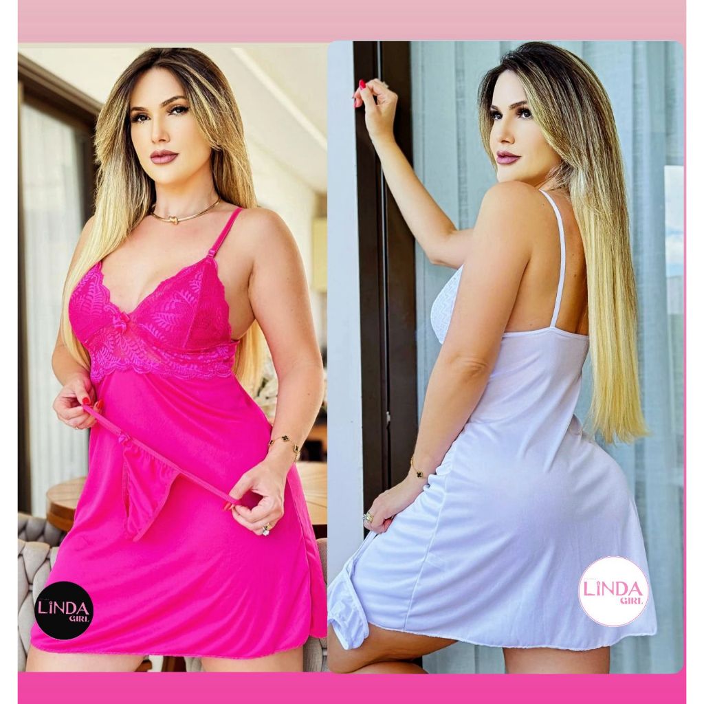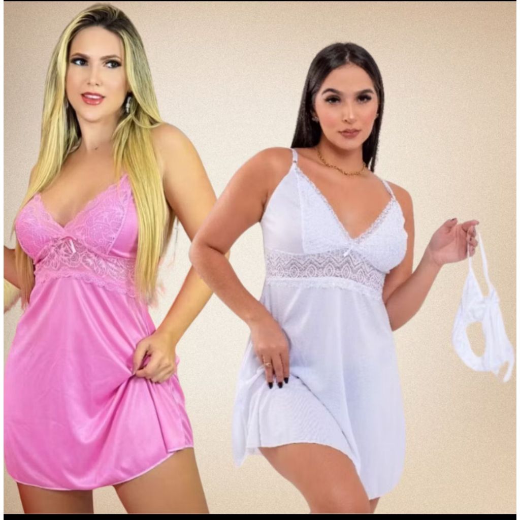 kit 3 linda camisola feminina ondinha para dormi sensual sexy + calcinha fio dental pijama vestido