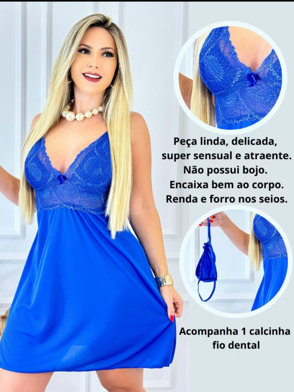 camisola feminina sensual linha premio lingerie sexy sem bojo + calcinha fio dental de brinde luxo