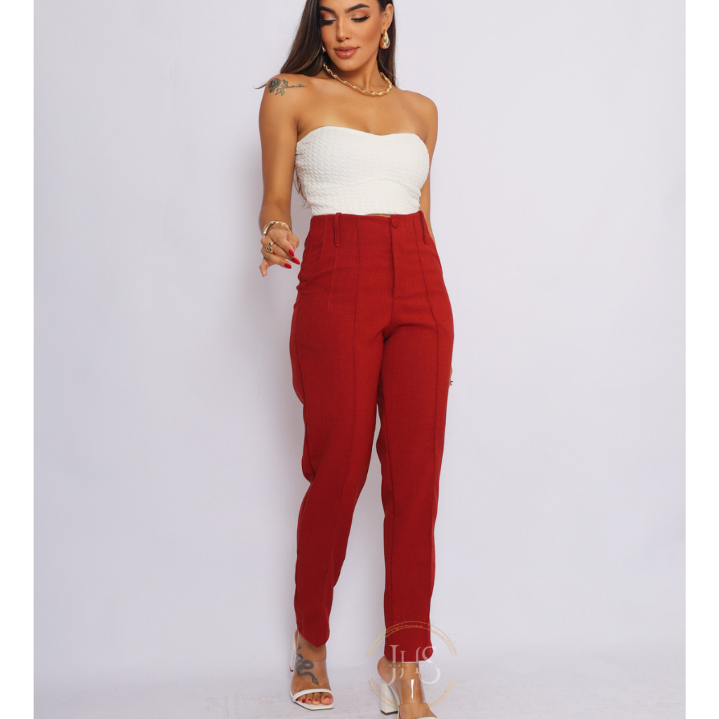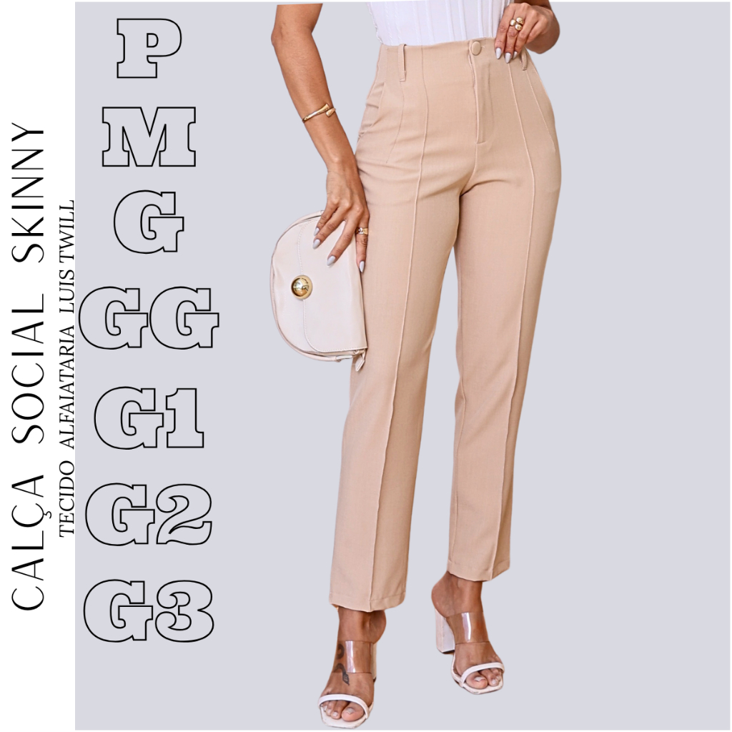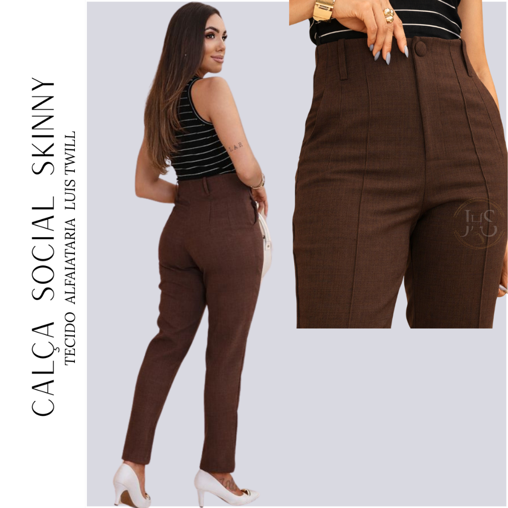 Calça Alfaiataria Feminina Skinny Modelo Cintura Alta Trabalho Empresaria
