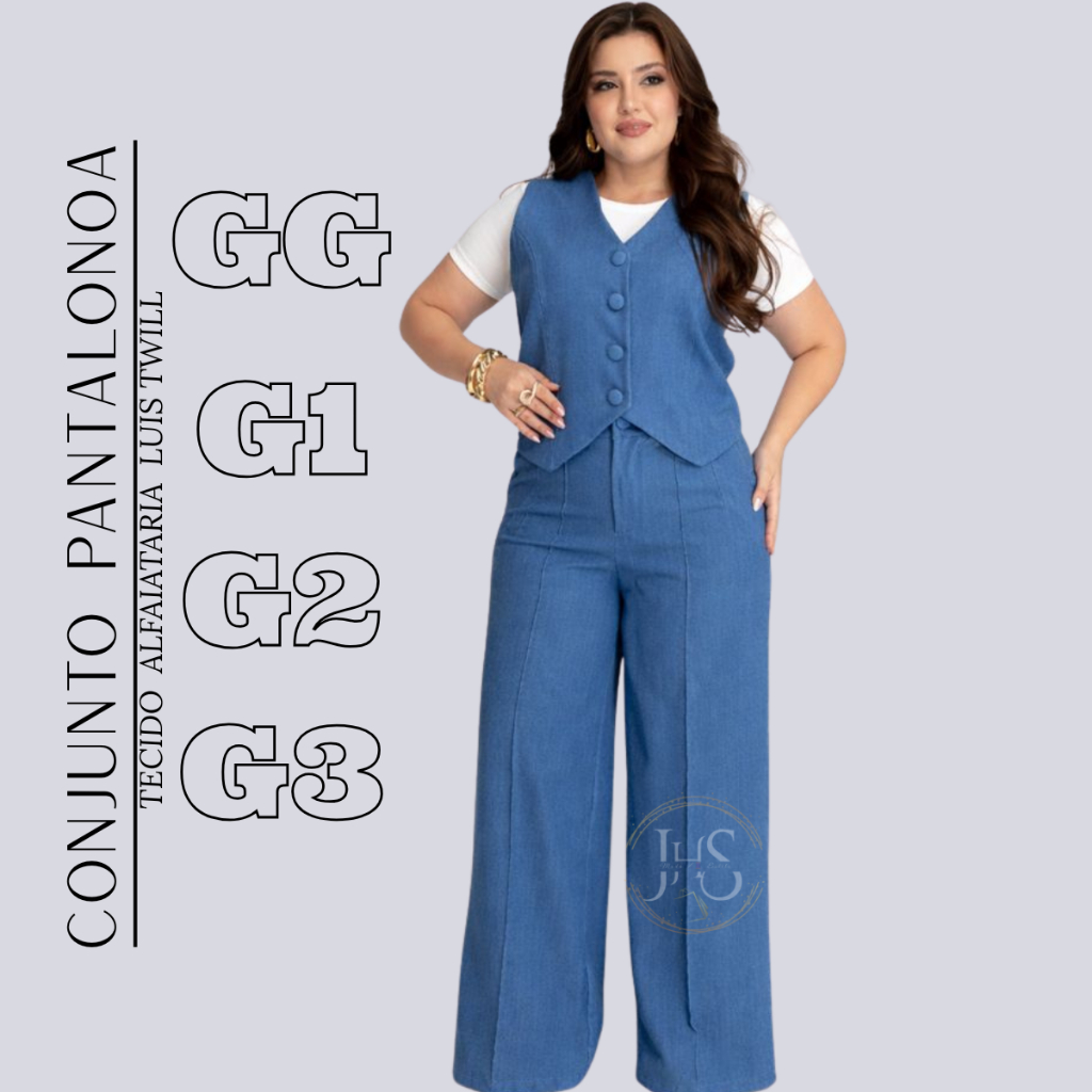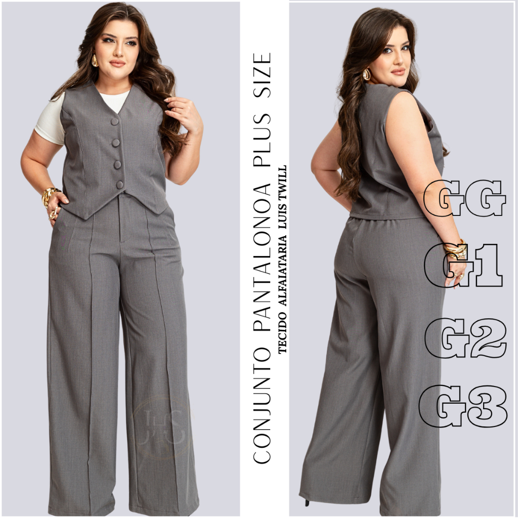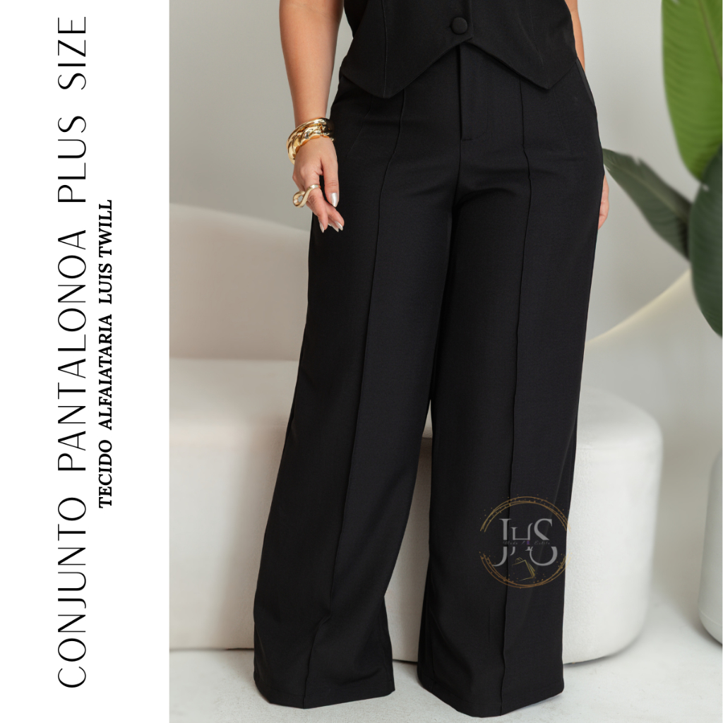 Conjunto na Alfaiataria Feminino Plus Size Colete e Calça Pantalona Social Empresaria Trabalho