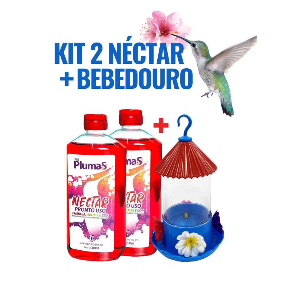 Kit 2 Néctar para beija-flor Pronto Uso + Bebedouro 250ml para Jardim