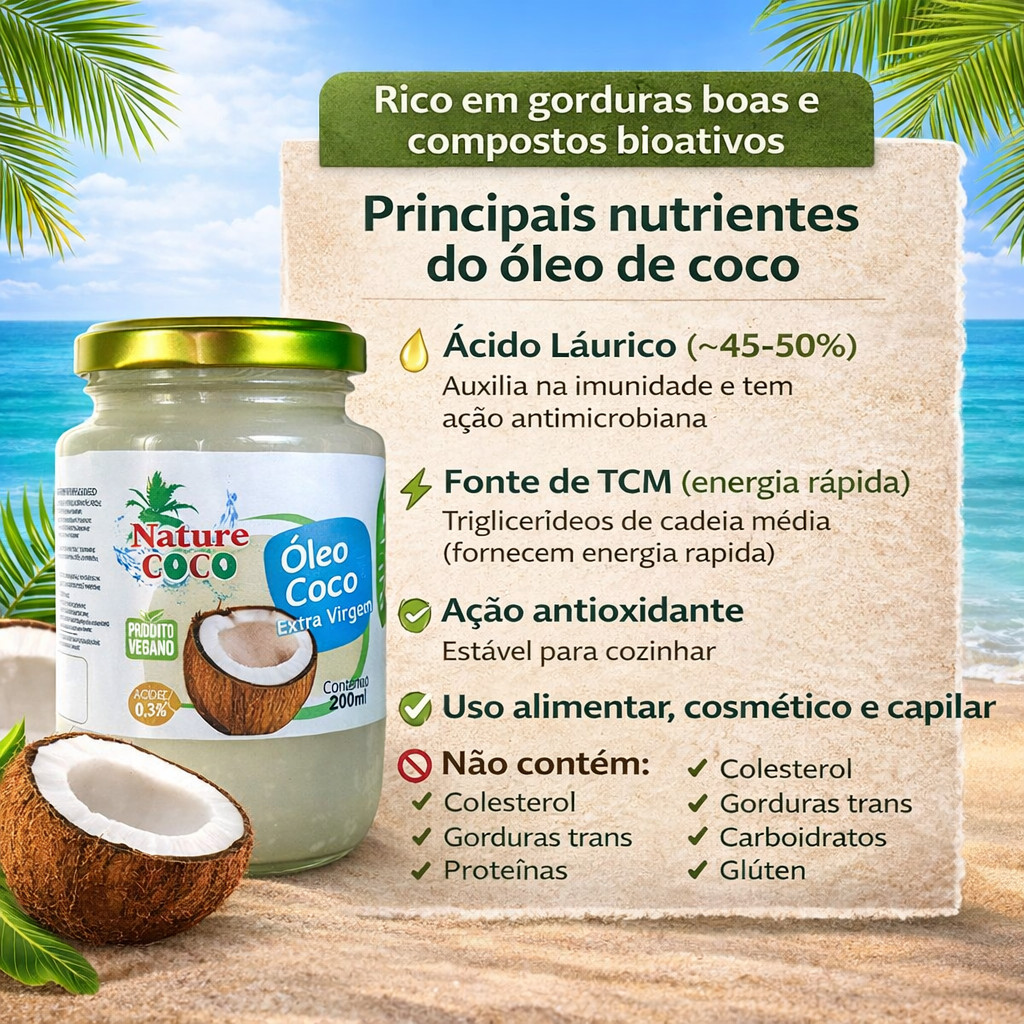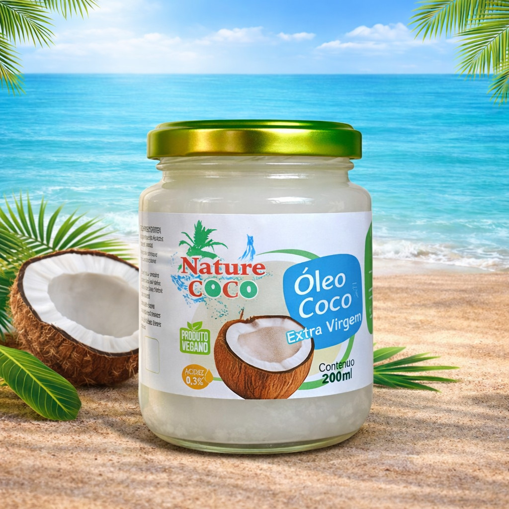 Óleo de Coco Extra Virgem 200ml 100% Natural Alimentar, Pele e Cabelo Multiuso Kit 2 e 4 Unidades