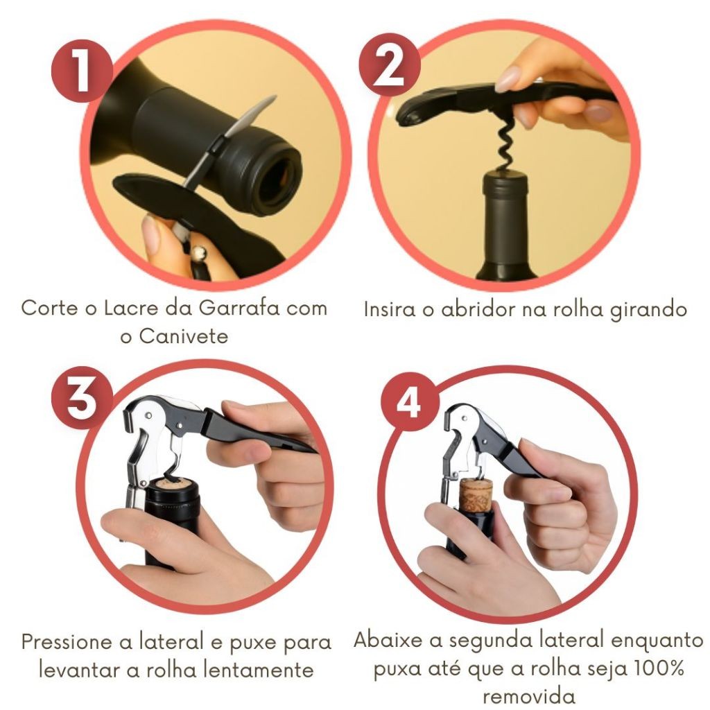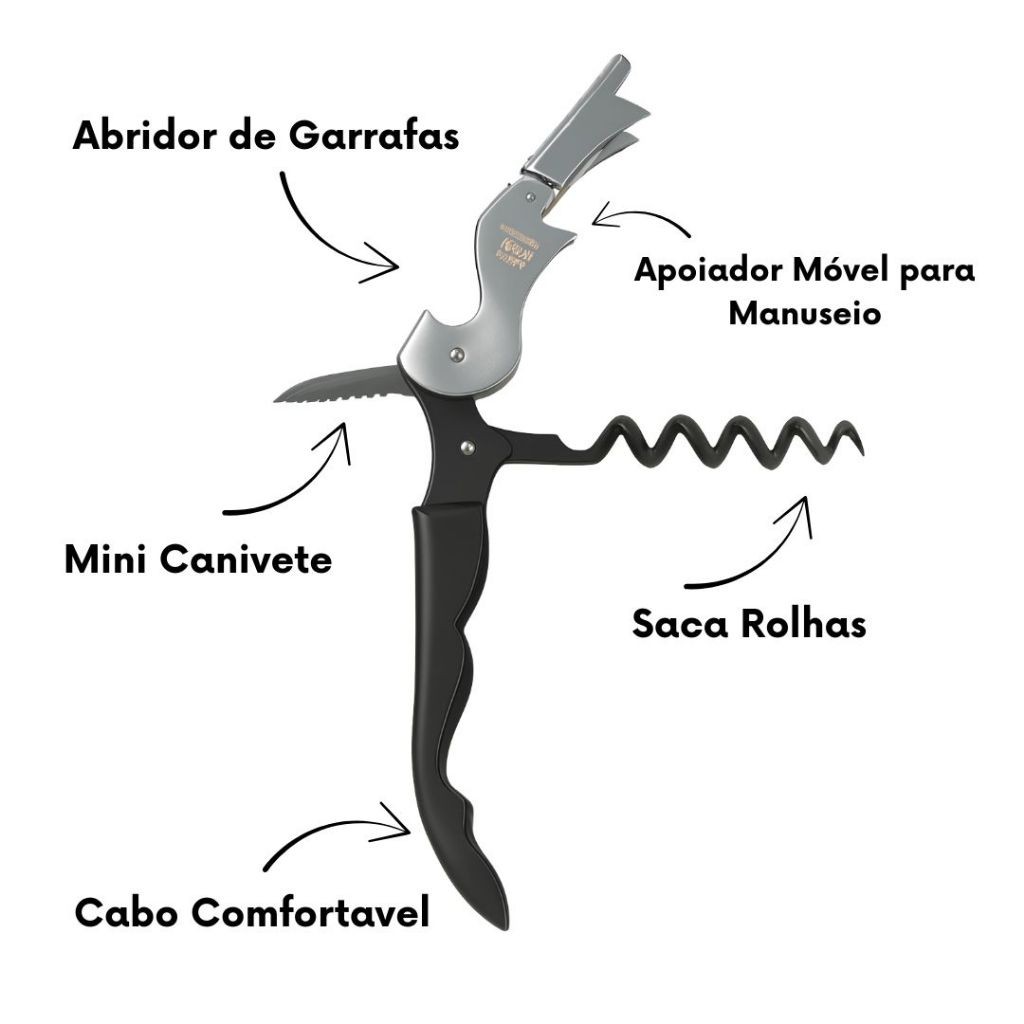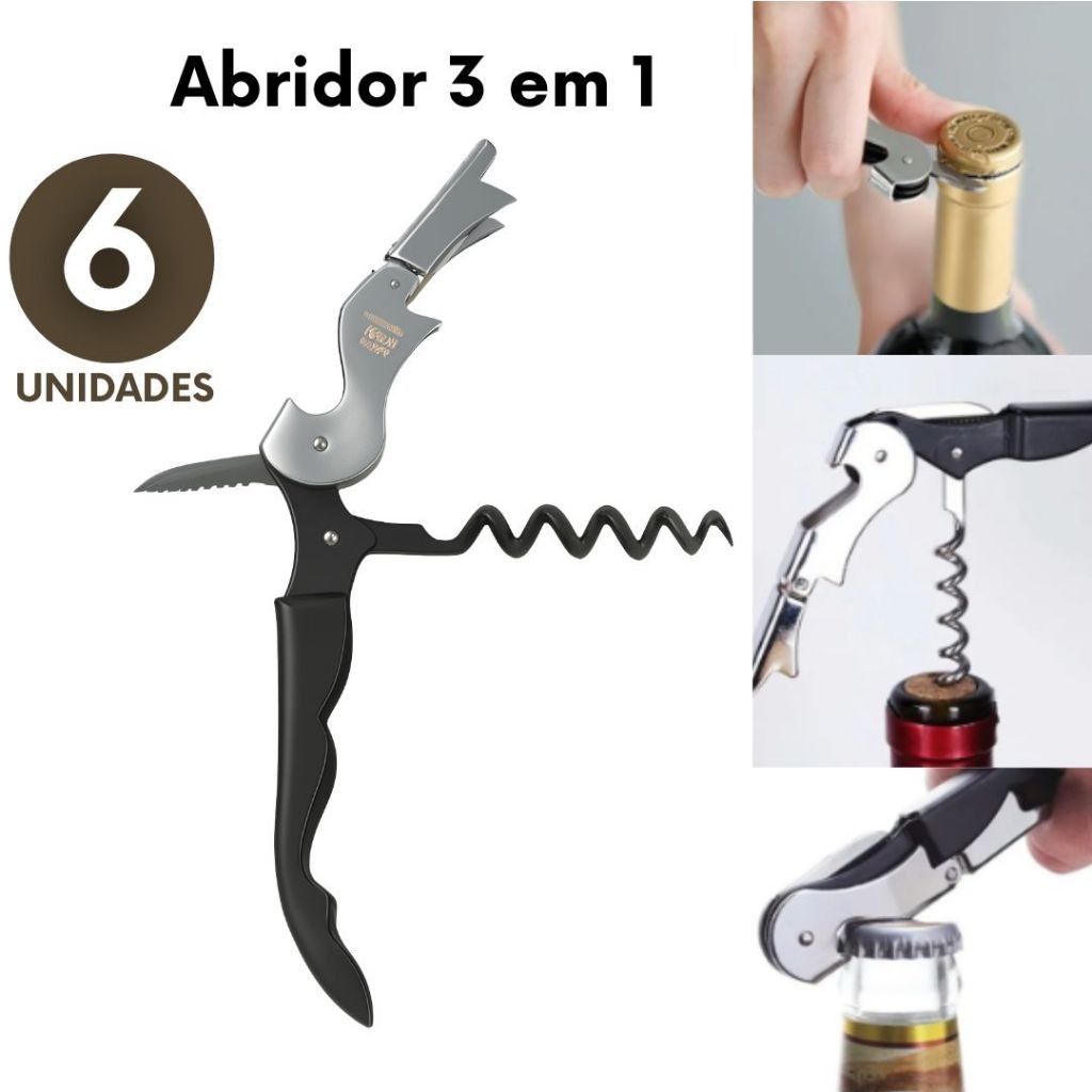 Kit 6 Abridor de Vinhos Saca Rolhas Premium 3 em 1 Aço Inox Garrafa Lata Mini Canivete Resistente