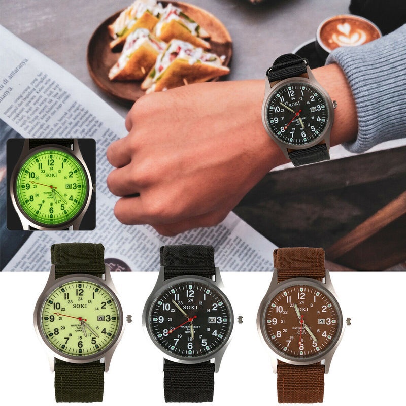 SOKI Moda Casual Masculino Relógio impermeável Brilhante Relógio Desportivo de Nylon Quartzo