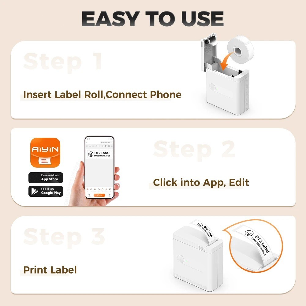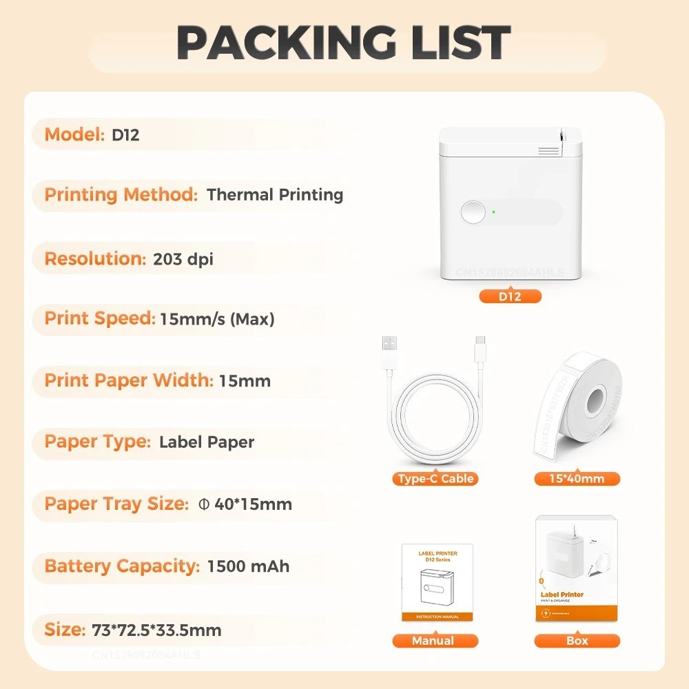2025 Nova Impressora Térmica Sem Tinta D12 De Etiquetas Portátil Bluetooth Mini Adesivos Fio Com Cortador DIY Código De