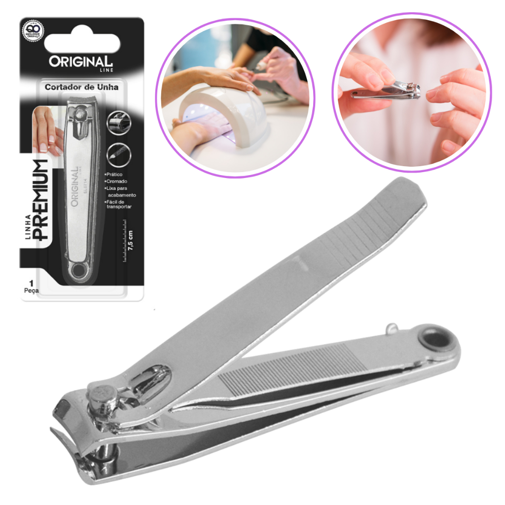 Cortador Cortadores De Unha Grande Com Lixa Manicure Pedicure Premium Original Line 7,5CM Aço Inox