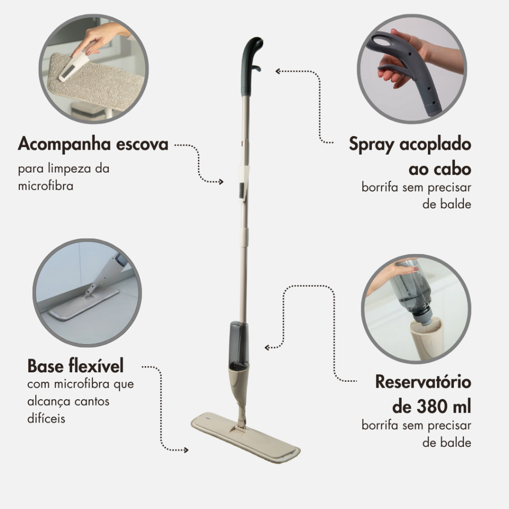 Mop Spray Bege OU Linha Flow – Limpeza Prática com Spray Integrado