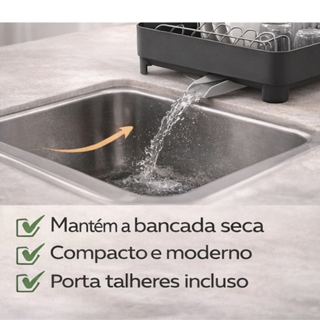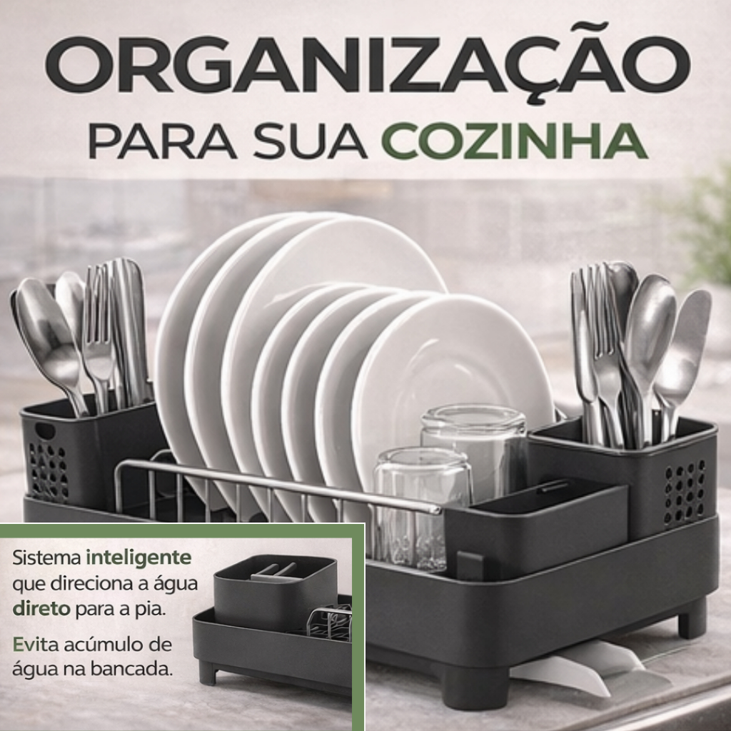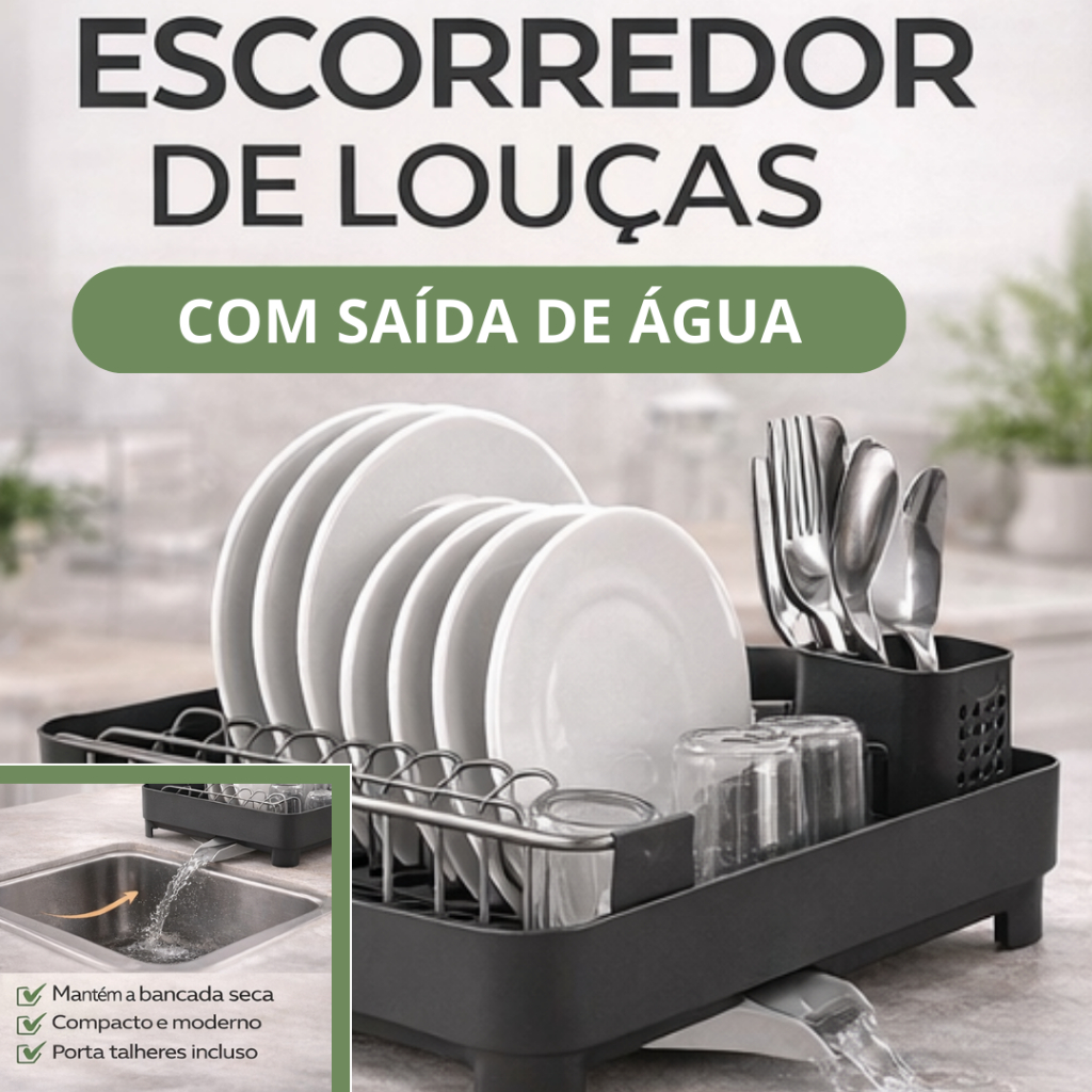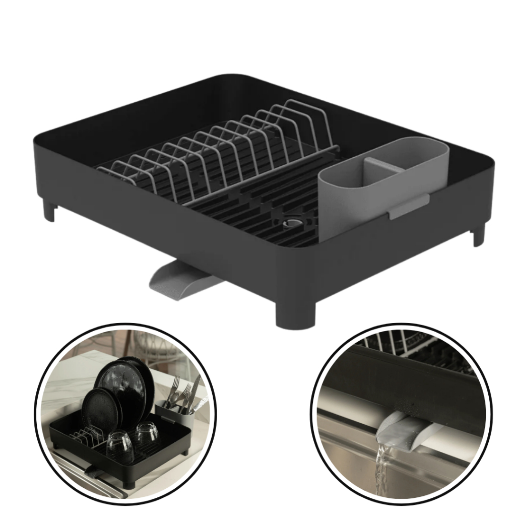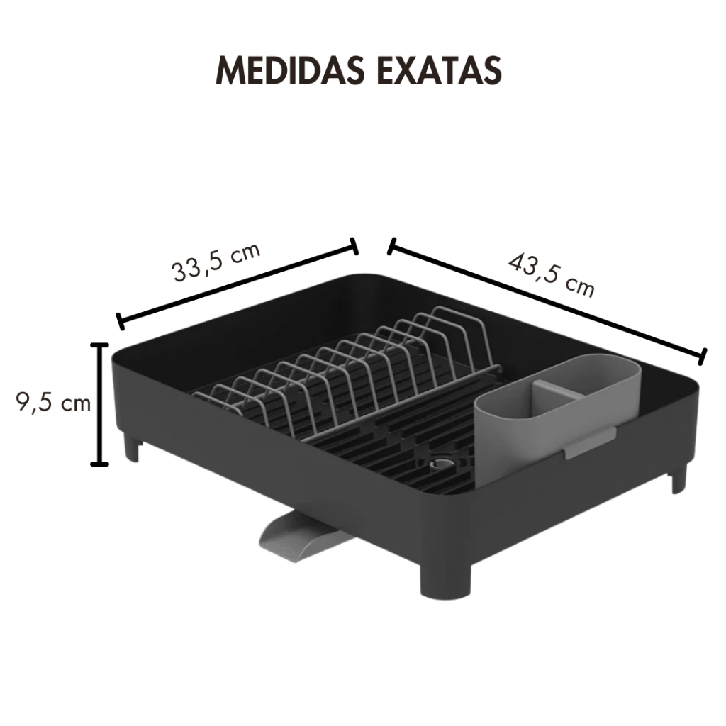 Escorredor de Louça Preto com Saída de Água Direta para Pia – Organizador de Pratos OU Linha Liv