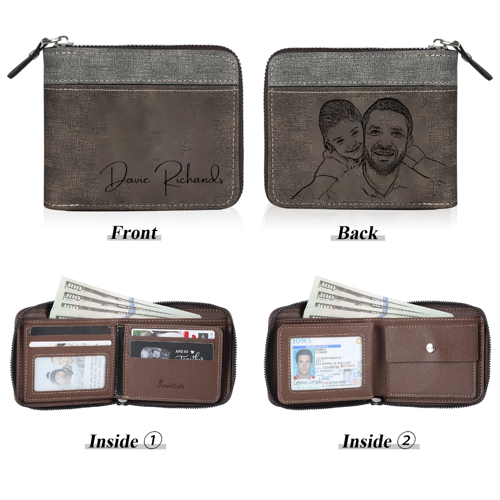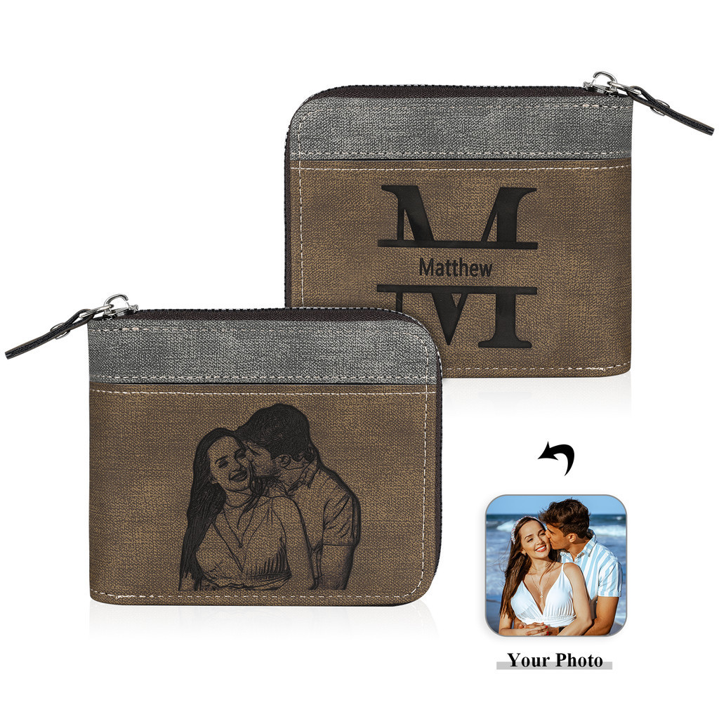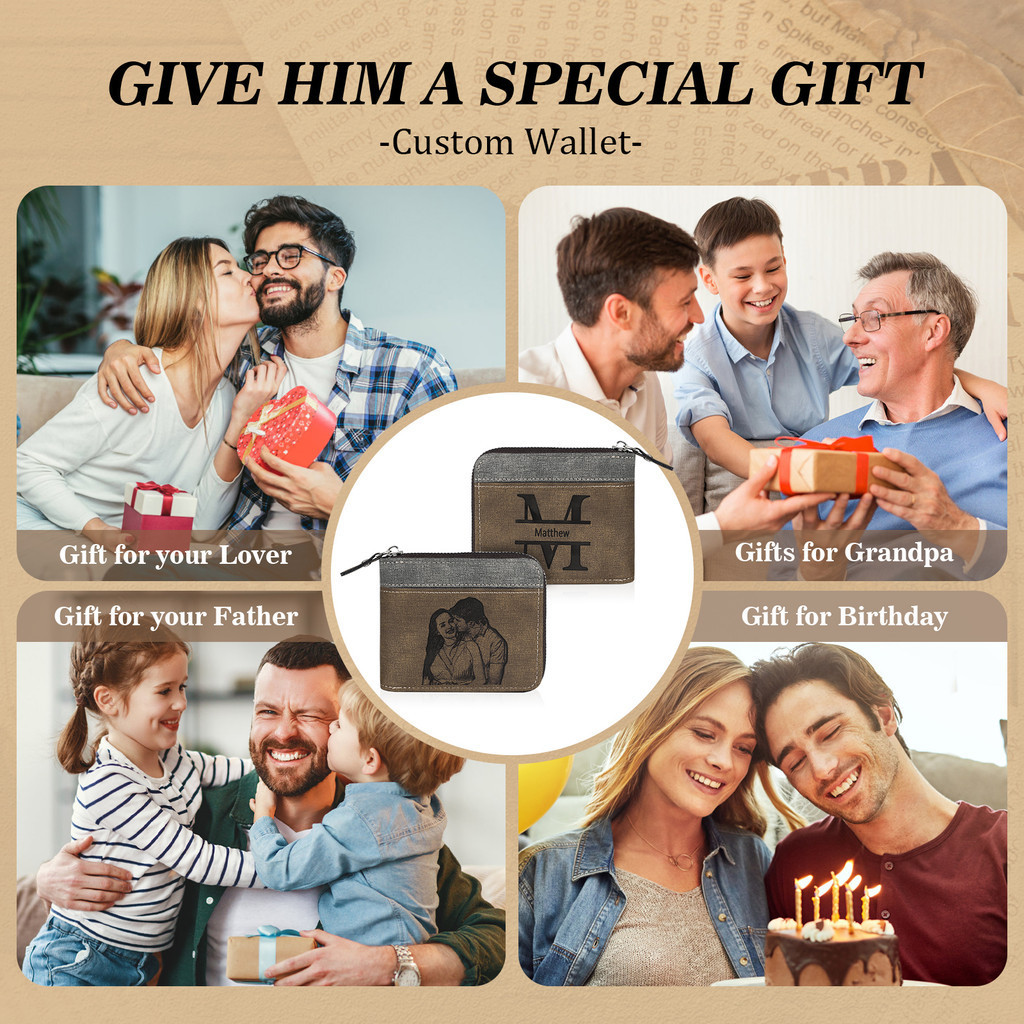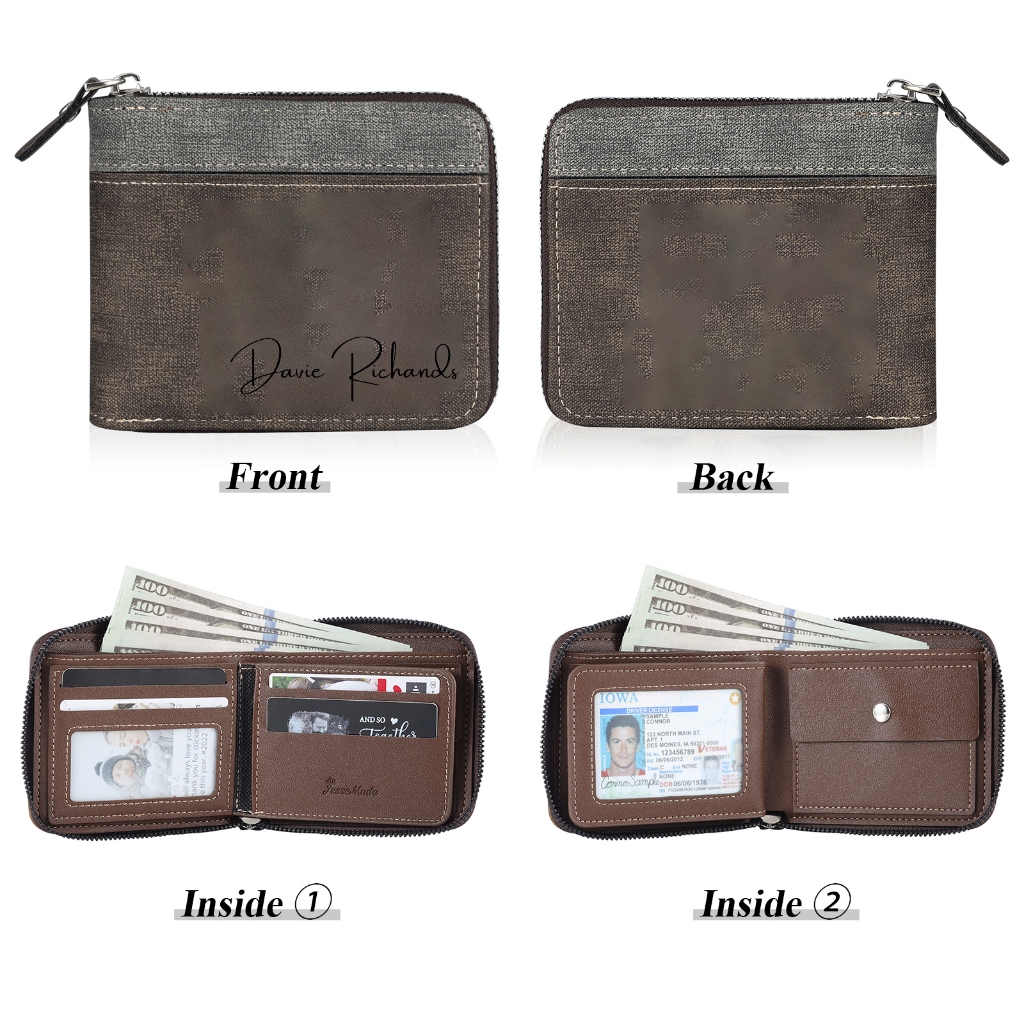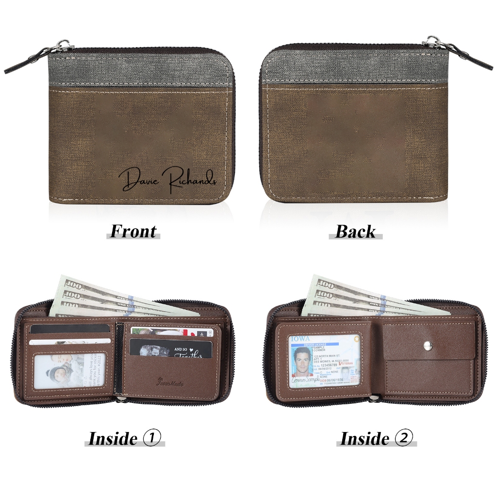 Carteira Masculina Com Foto Personalizada Bolsa De Moedas Zíper Nome De Texto Imagem Para Homens Presente Personalizado