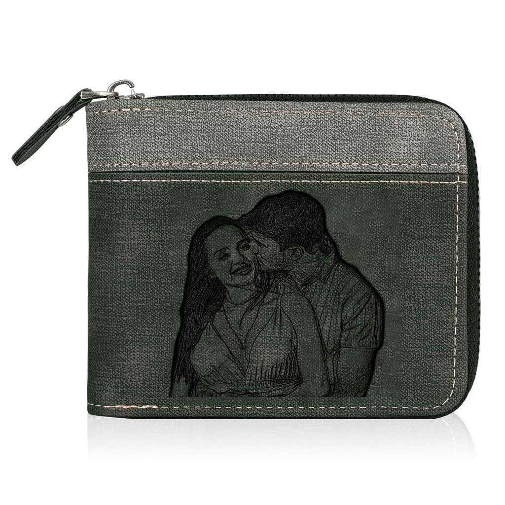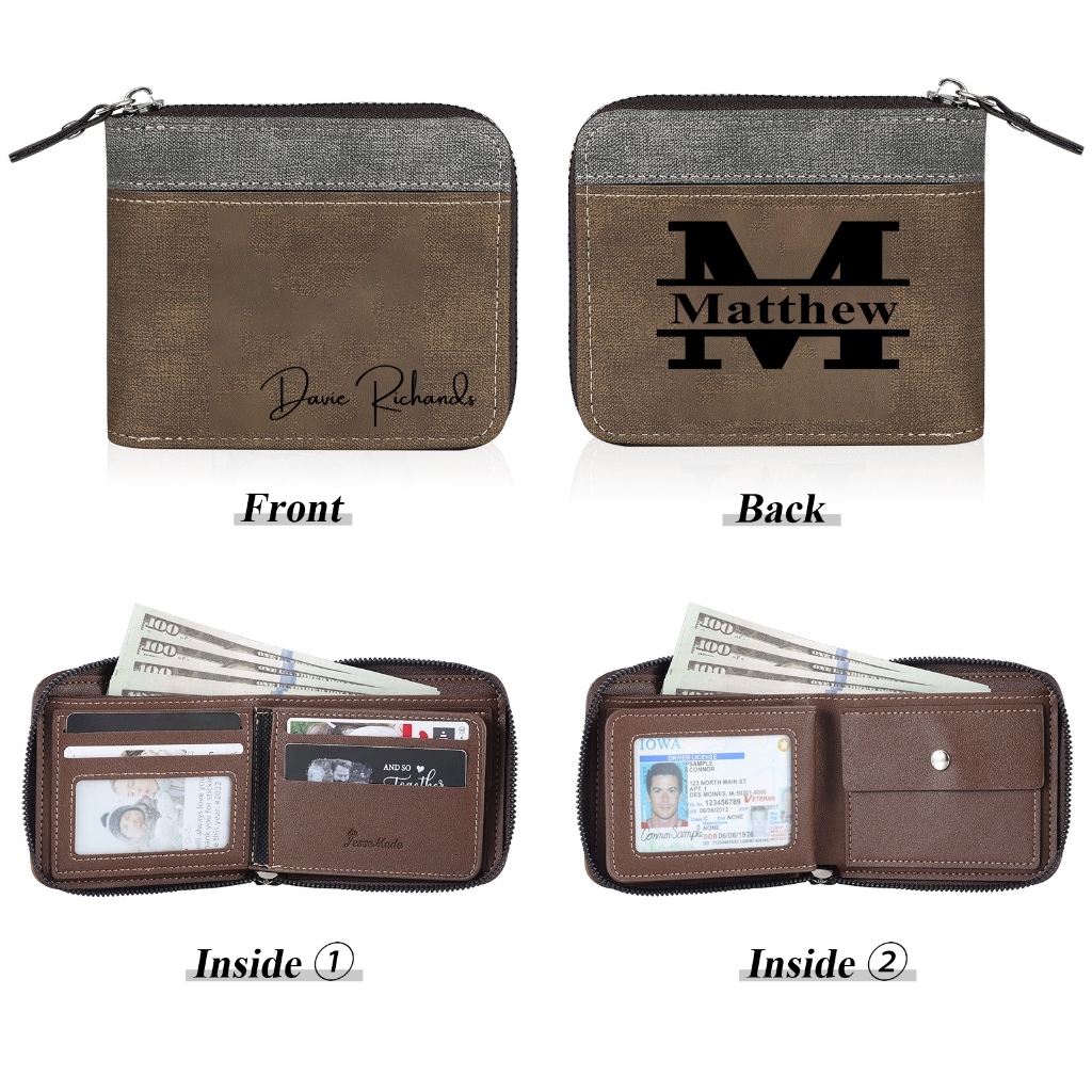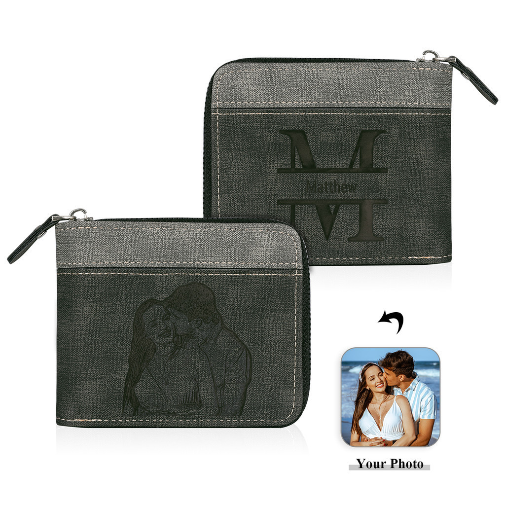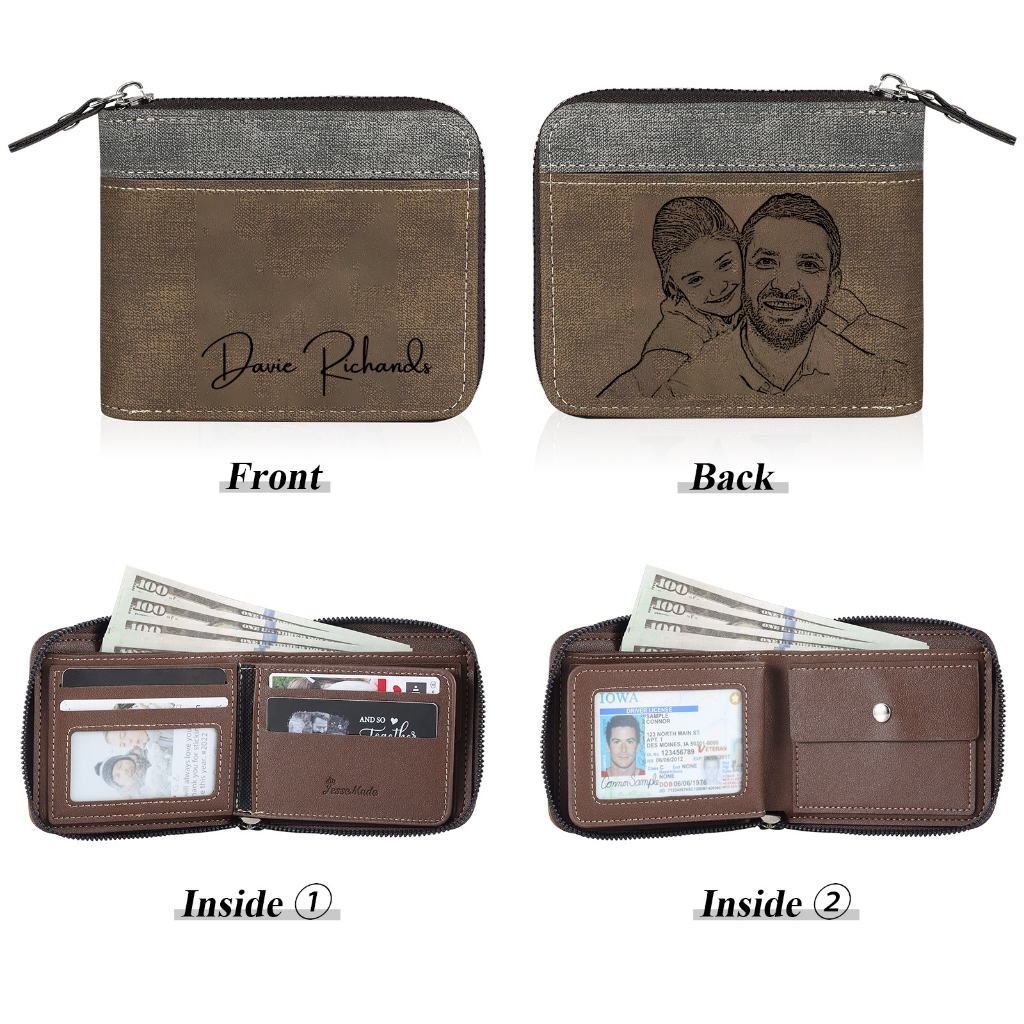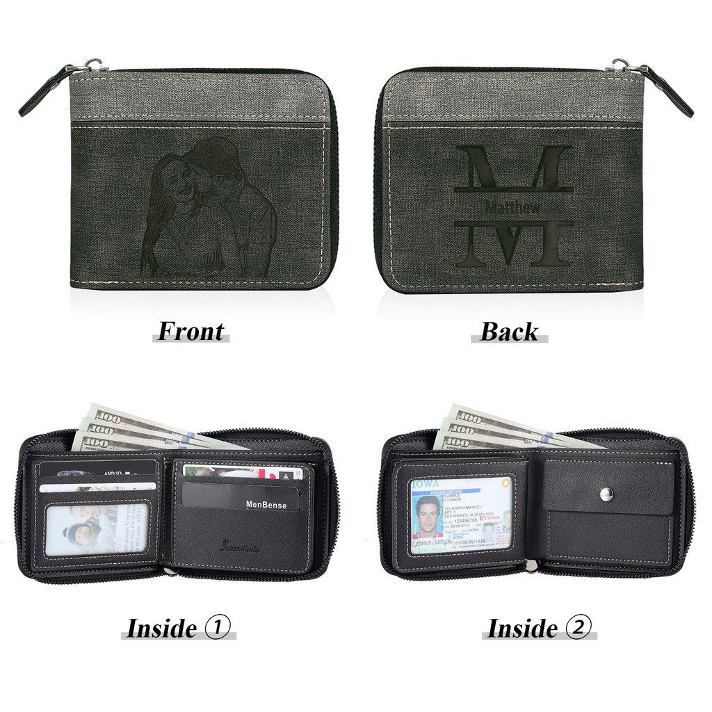 Carteira Masculina Com Foto Personalizada Bolsa De Moedas Zíper Nome De Texto Imagem Para Homens Presente Personalizado