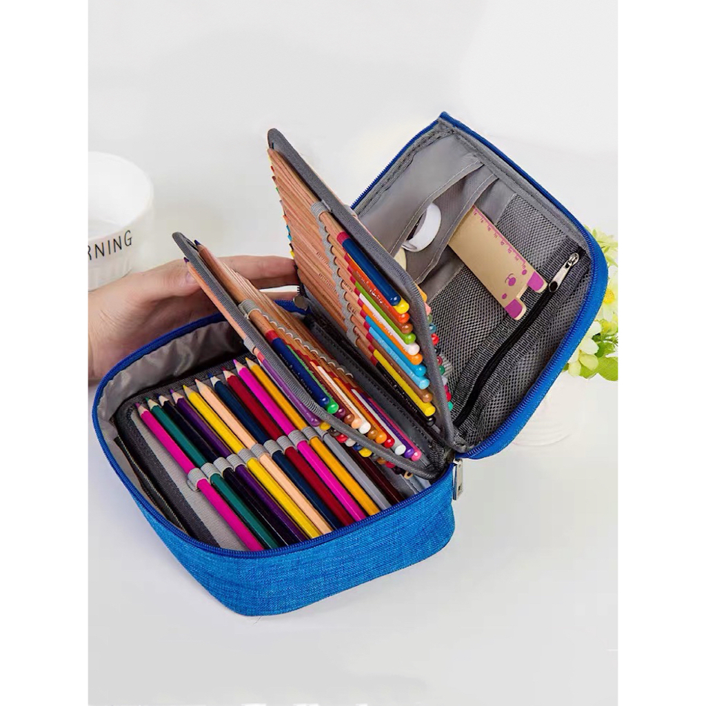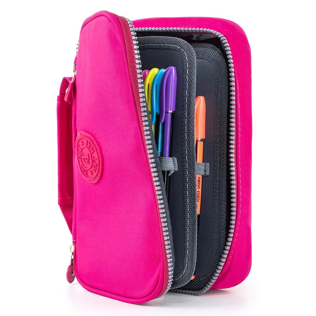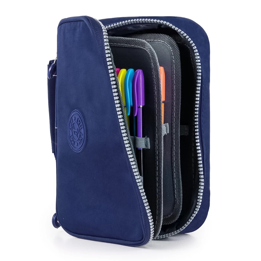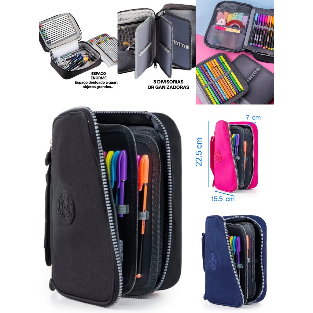 Estojo 72 Pens Escolar Box Nylon Com Alça Feminino/Masculino Organizador Com Divisórias Zíper Infantil