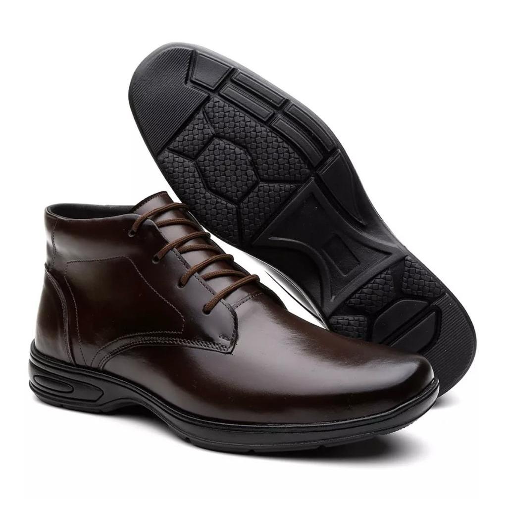 Bota de Couro Legitimo Ortopédica Botina Casual Confortável Antiderrapante Pronta Entrega