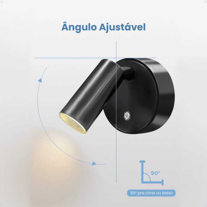 Arandela Interna Perfil Bateria Recarregavel S/ Fio Quarto Cabeceira Touch Led Automatica