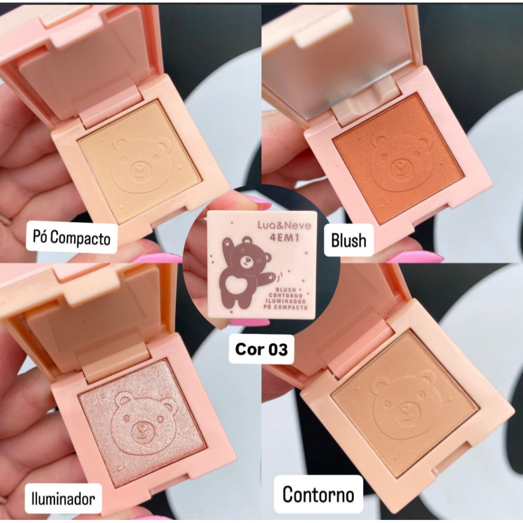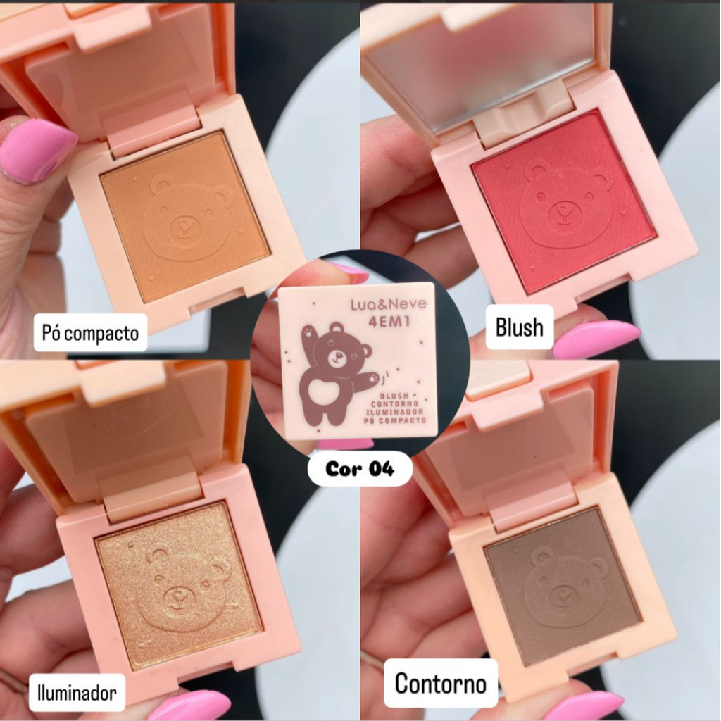 Mini Paleta De Bolsa 4 em 1 | Pó + Blush + Contorno + Iluminador Com Espelho | Lua e Neve