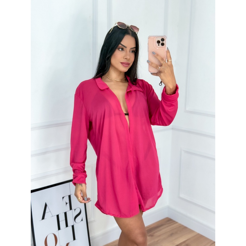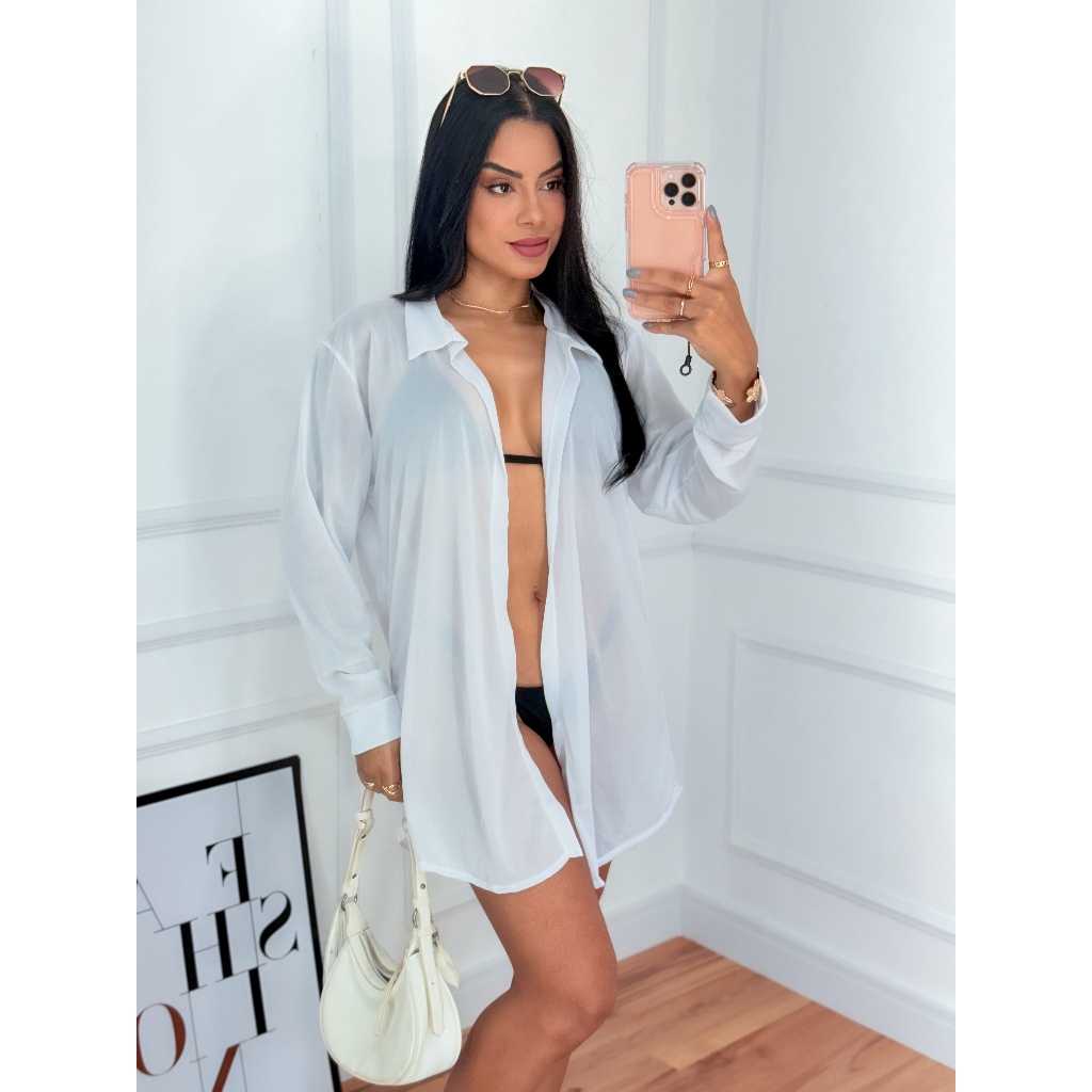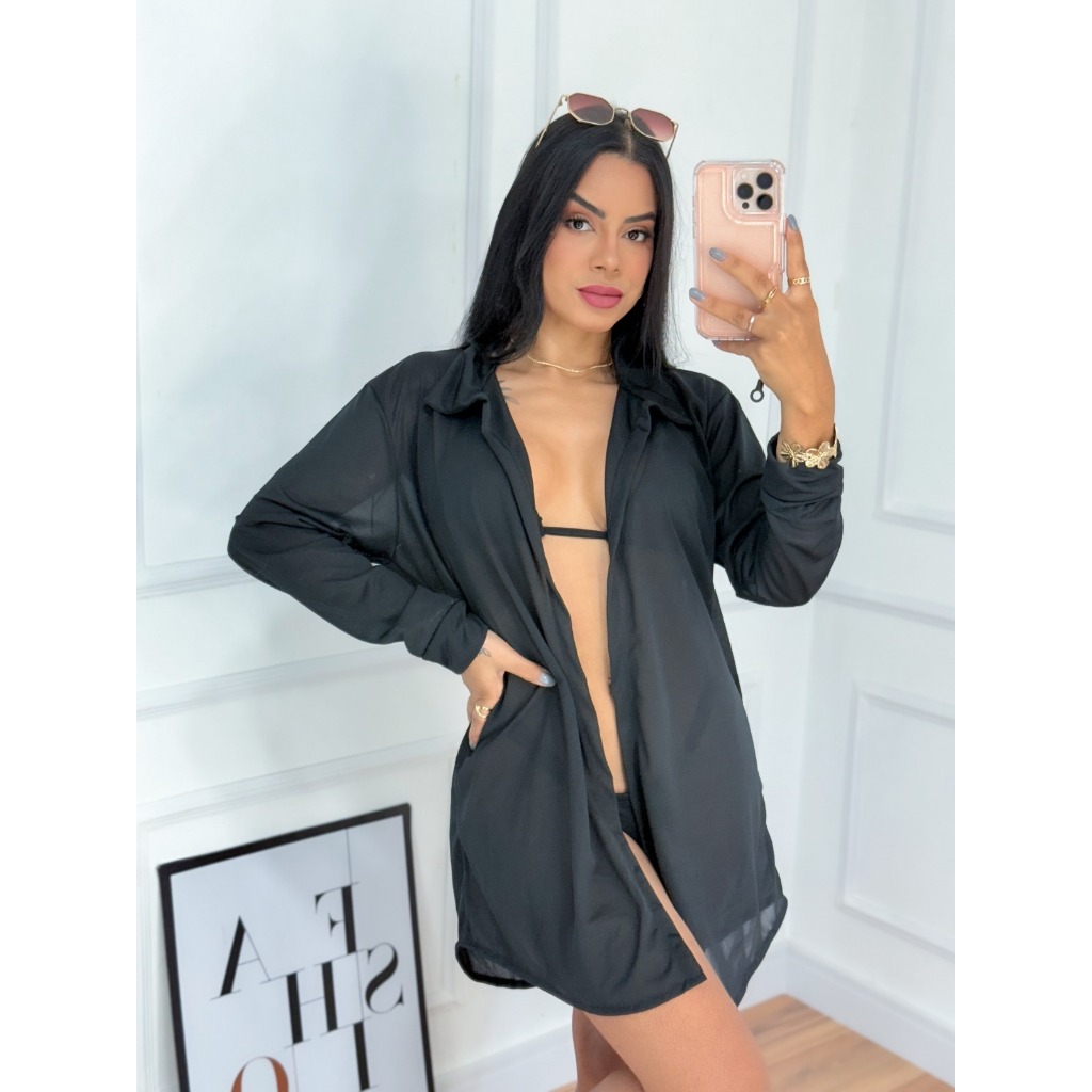 Kimono Saída de Praia Feminino Blusão de Banho Curto Simples Sem Botão
