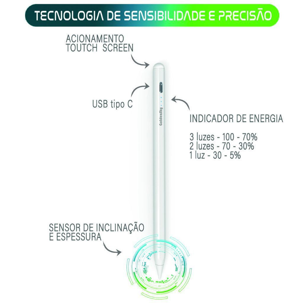 Caneta Touchscreen Para Celular Tablet Ponta Fina Recarregavel Universal