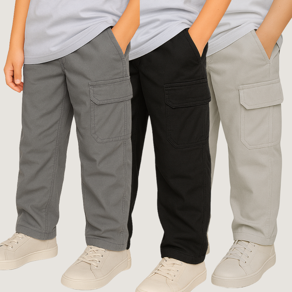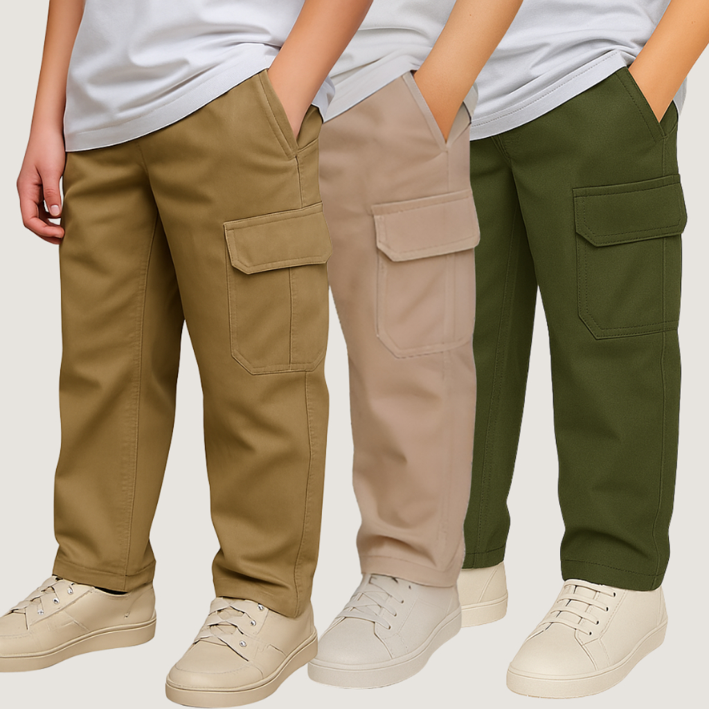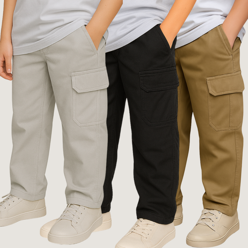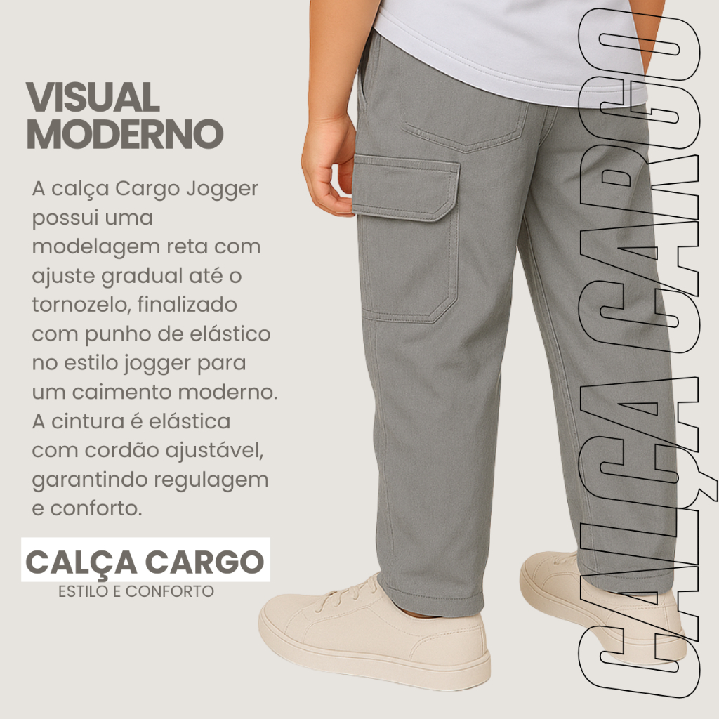 Calça Cargo Infantil Masculina Menino Sarja Confortável Escolar Casual Streetwear Tamanhos 10 ao 16
