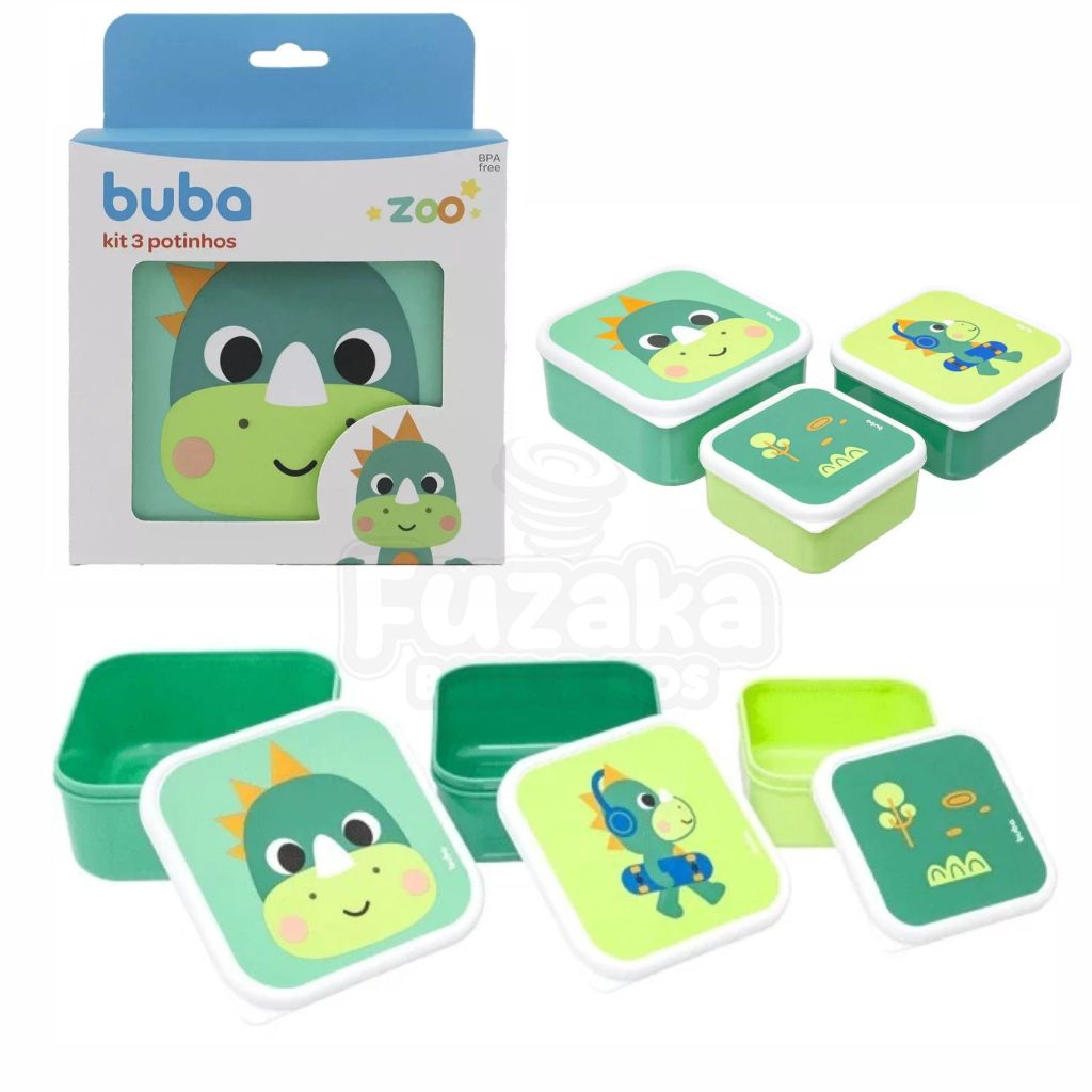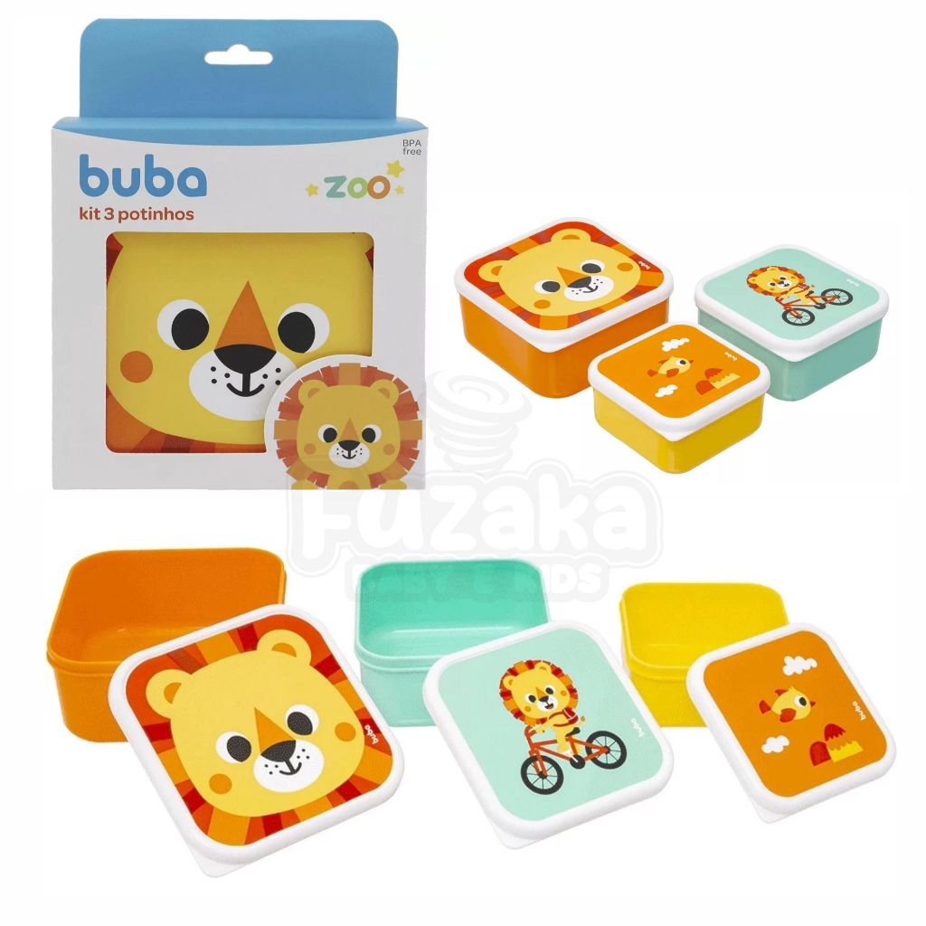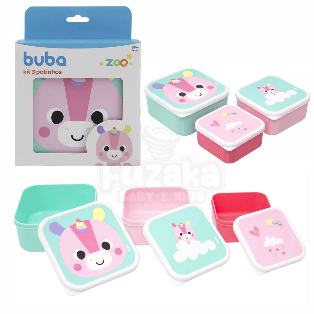 Kit 3 Potinhos Alimentação Buba Zoo Dino Leao Unicornio Bebê Infantil Pote Introdução Alimentar