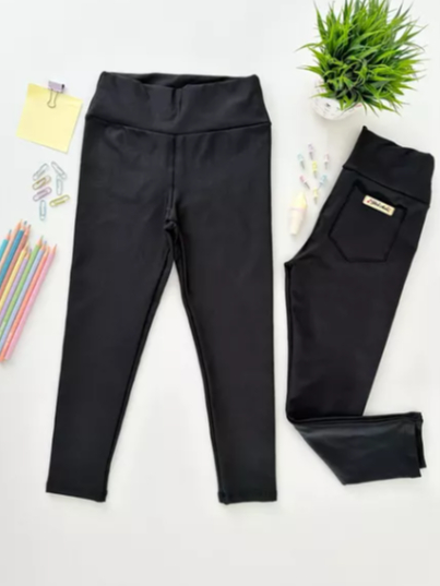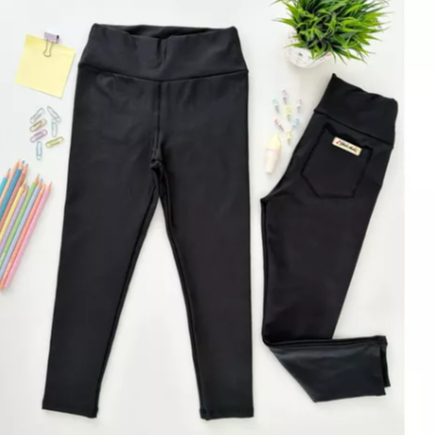 calça legging suplex flanelada infantil e juvenil com bolsos 4 aos 14 anos