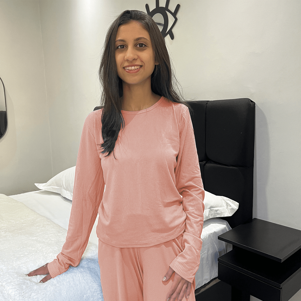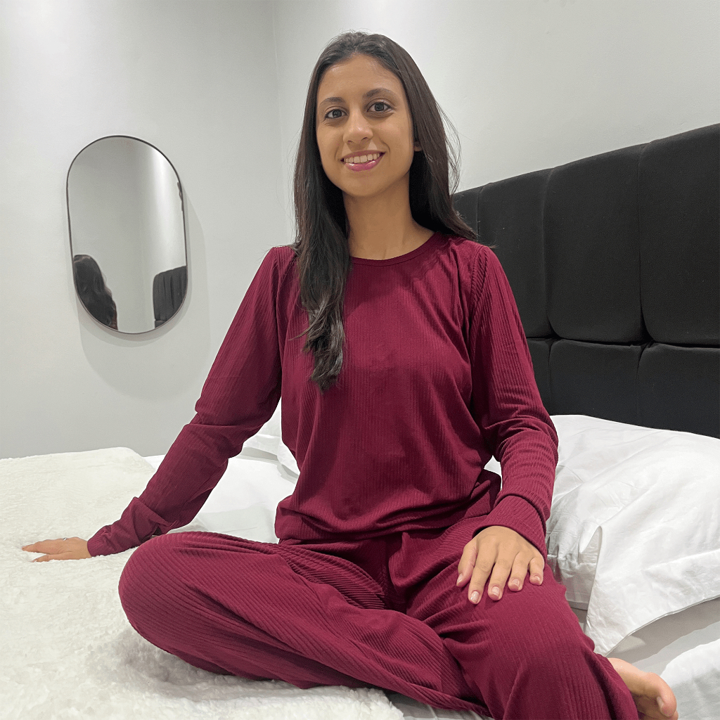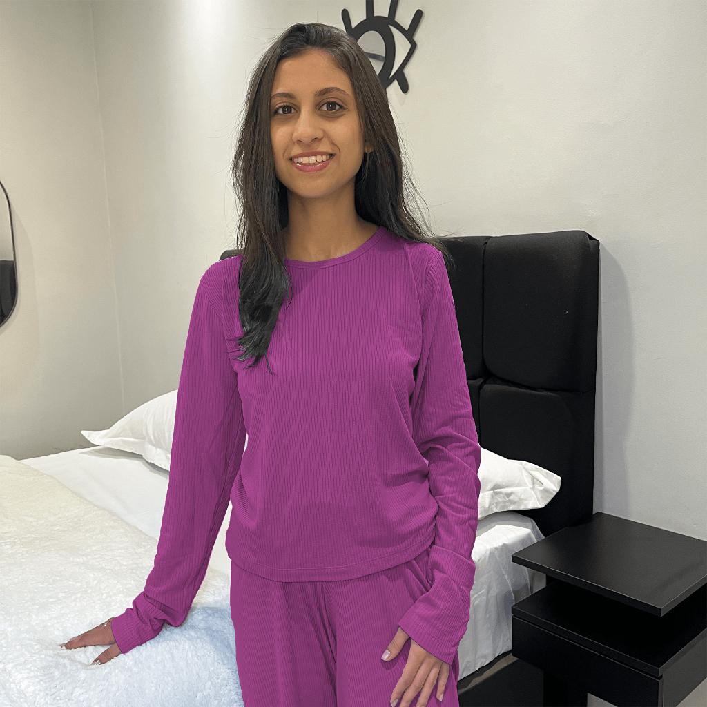 Pijama Feminino Adulto Manga Longa e Calça Suede Canelado
