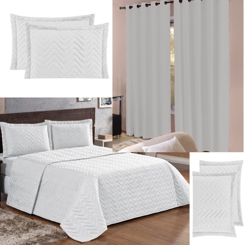 Kit Quarto 4 Peça - Cobre leito Império + Cortina Roma 3 metros + 2 Porta travesseiro Jogo de cama Decoração de quarto