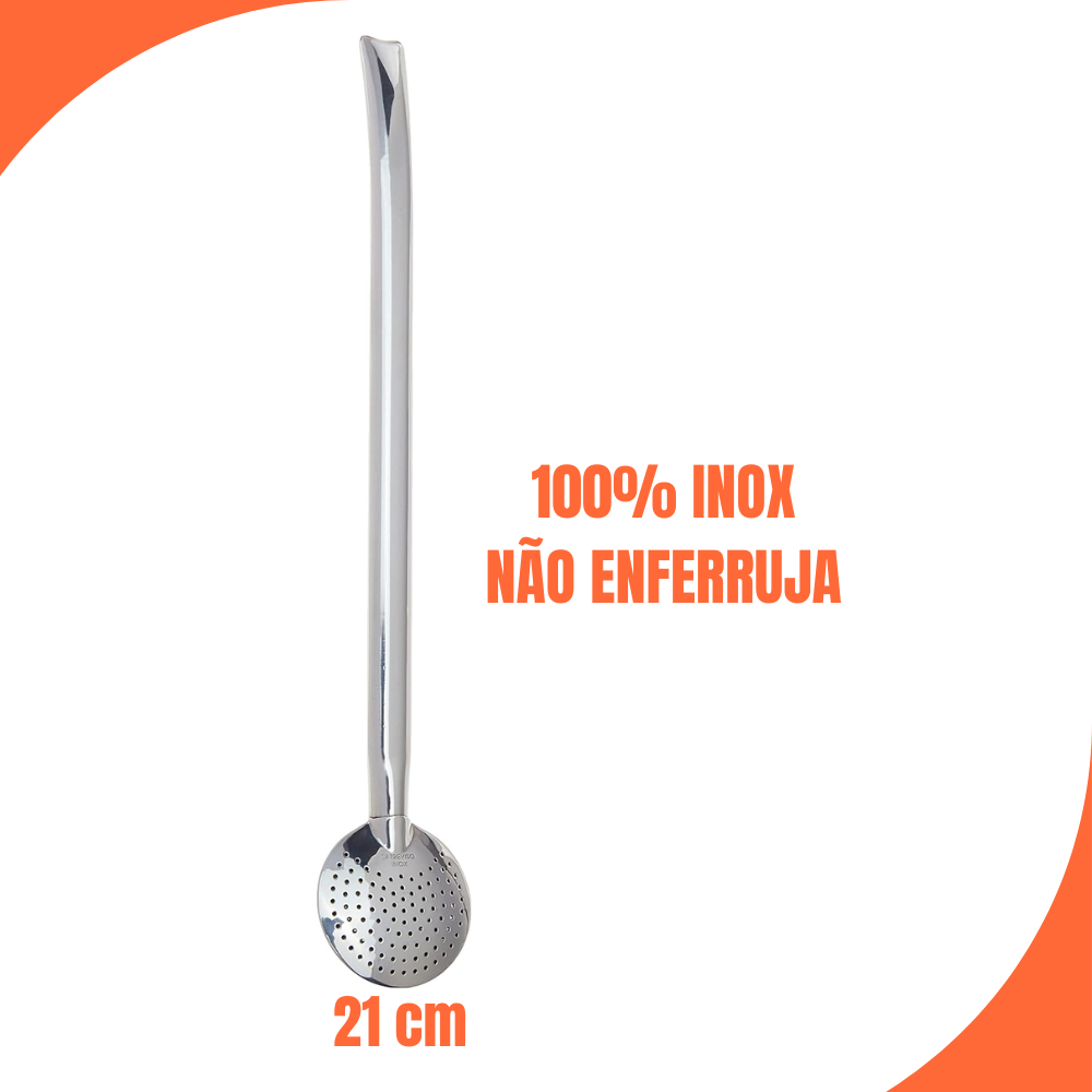 Bomba de Chimarrão em Aço Inox Lisa 18cm ou 21cm - Não Enferruja