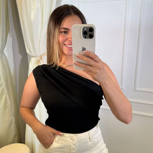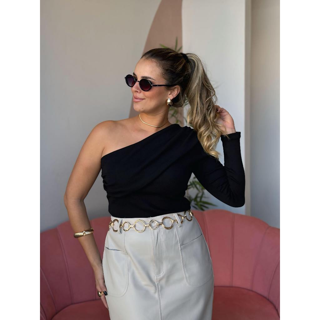 Blusa Feminina Um Ombro Só Canelada em Ribana Premium Tamanho Único (P ao G) Não é Transparante