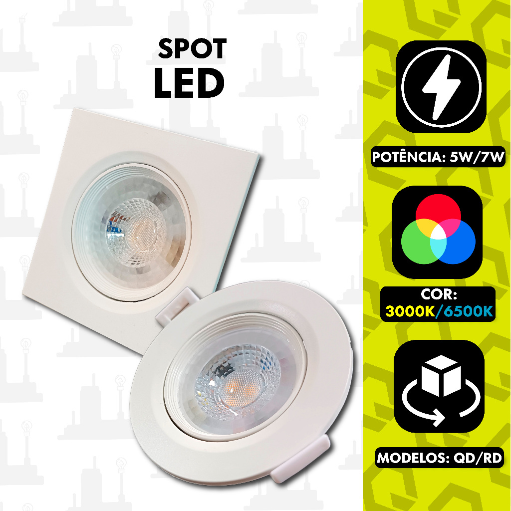 Spot led 5w/7w Luminária Bivolt Direcionavel Redondo Quadrado Embutido 6500K/ 3000K LED FACTORY