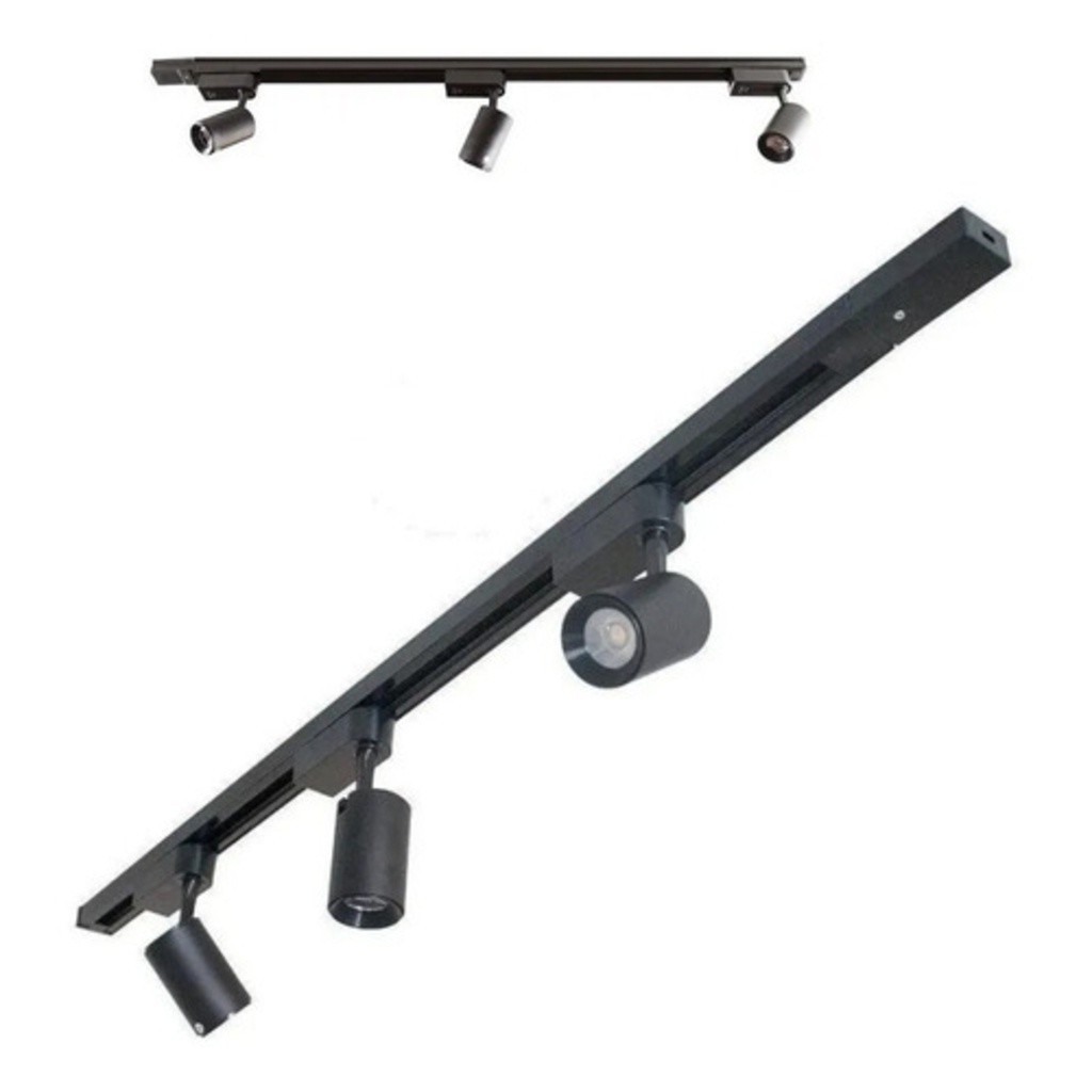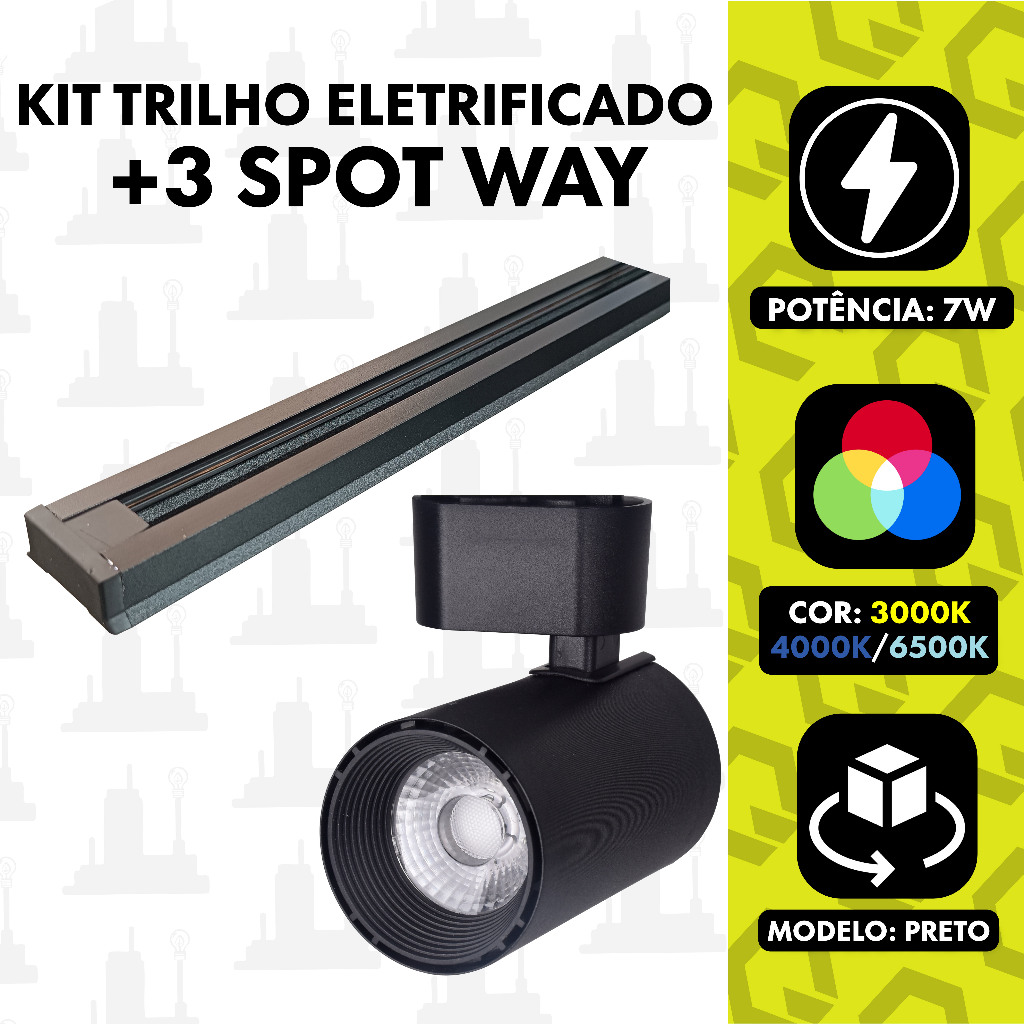 kit Trilho Eletrificado de 1m + 3 Spots 7w led Preto Luz 6500K/ 4000K/ 3000K LED FACTORY