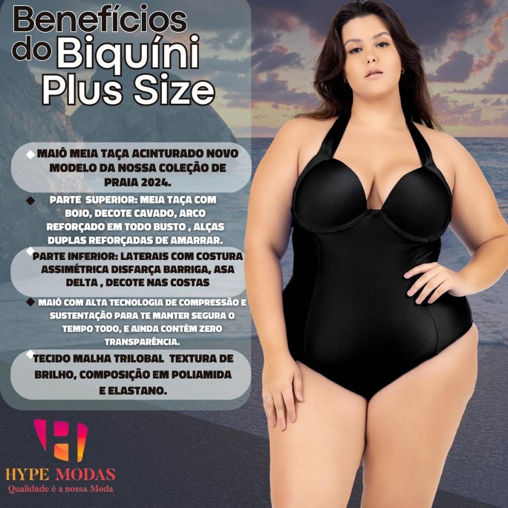 Maiô Plus Size Liso Veste Bem Chapa Barriga Com Bojo Cortinão Materiais Premium Costuras Reforçadas
