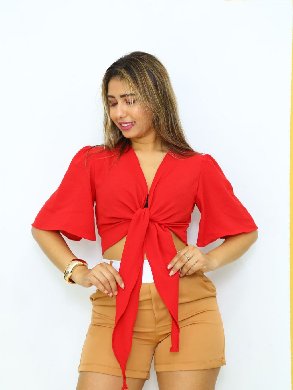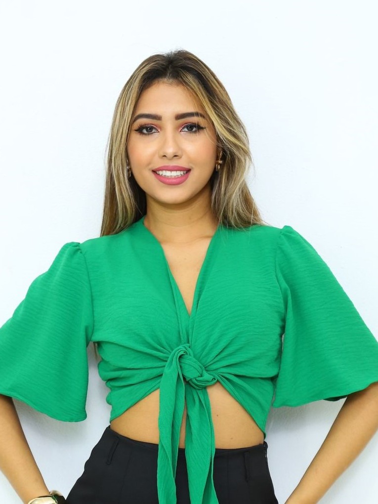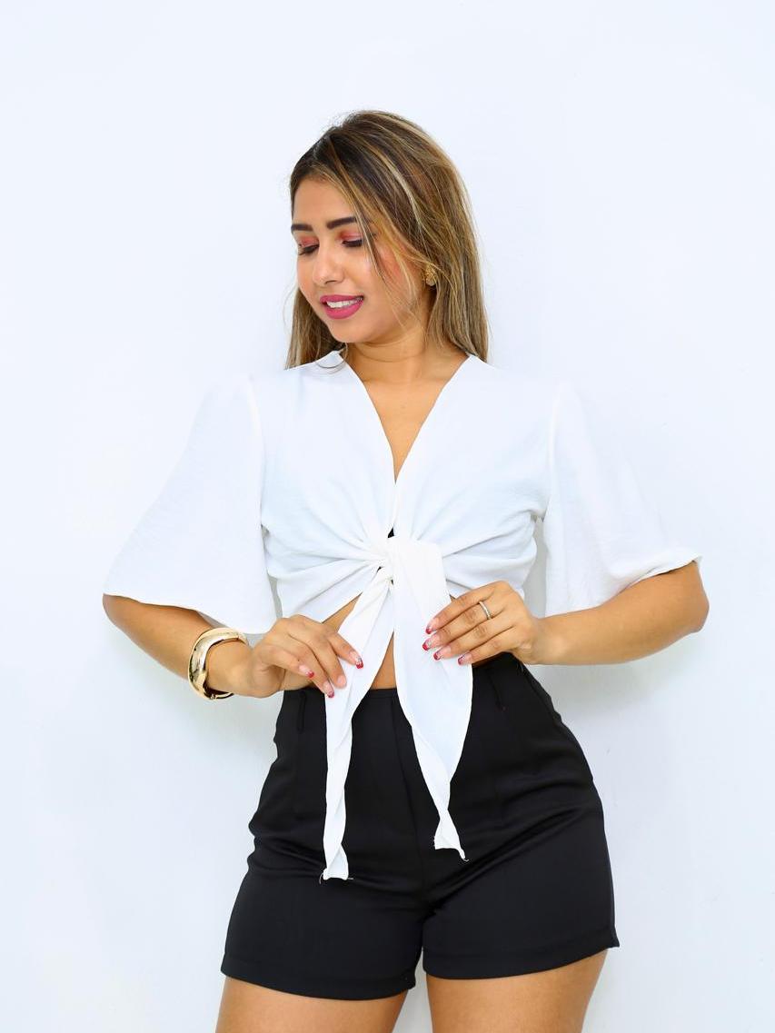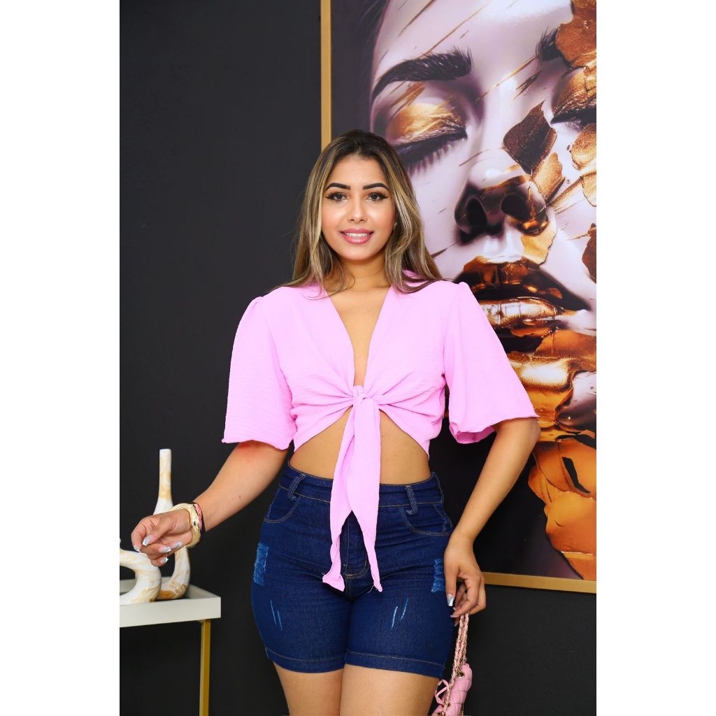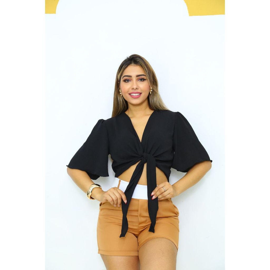 Blusa Cropped De Amarrar Na Frente Laço Manga curto