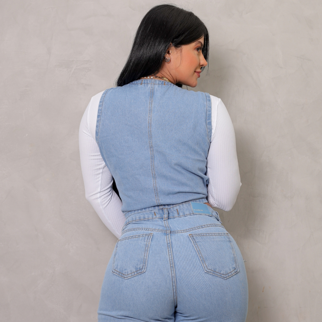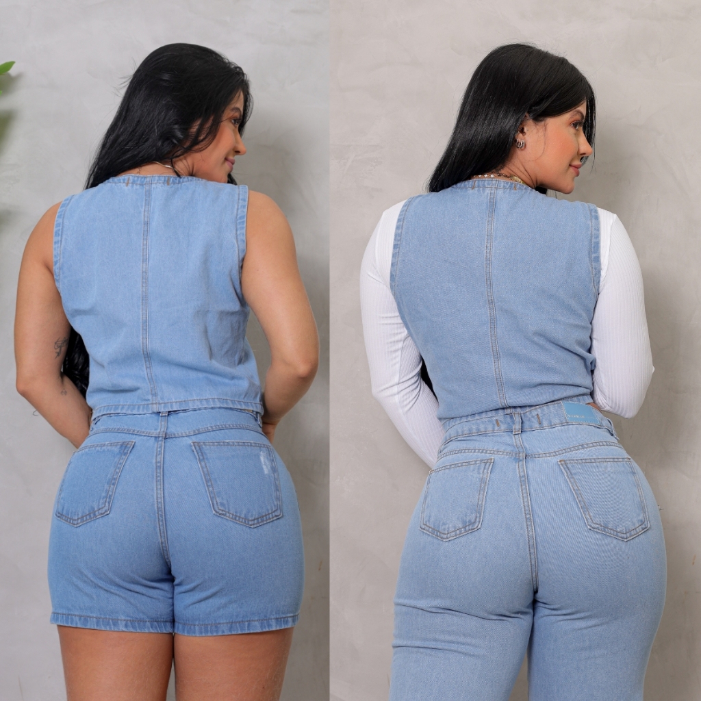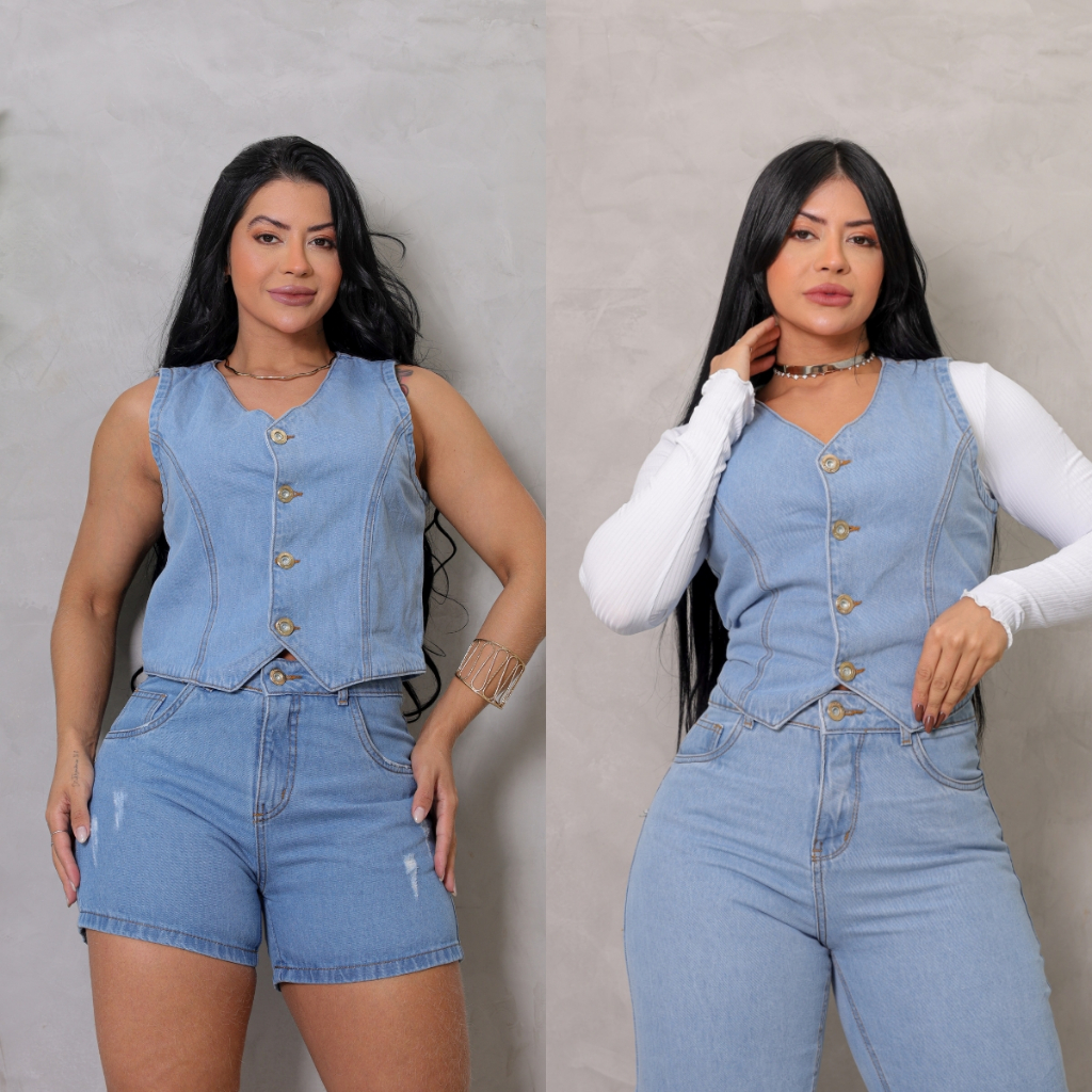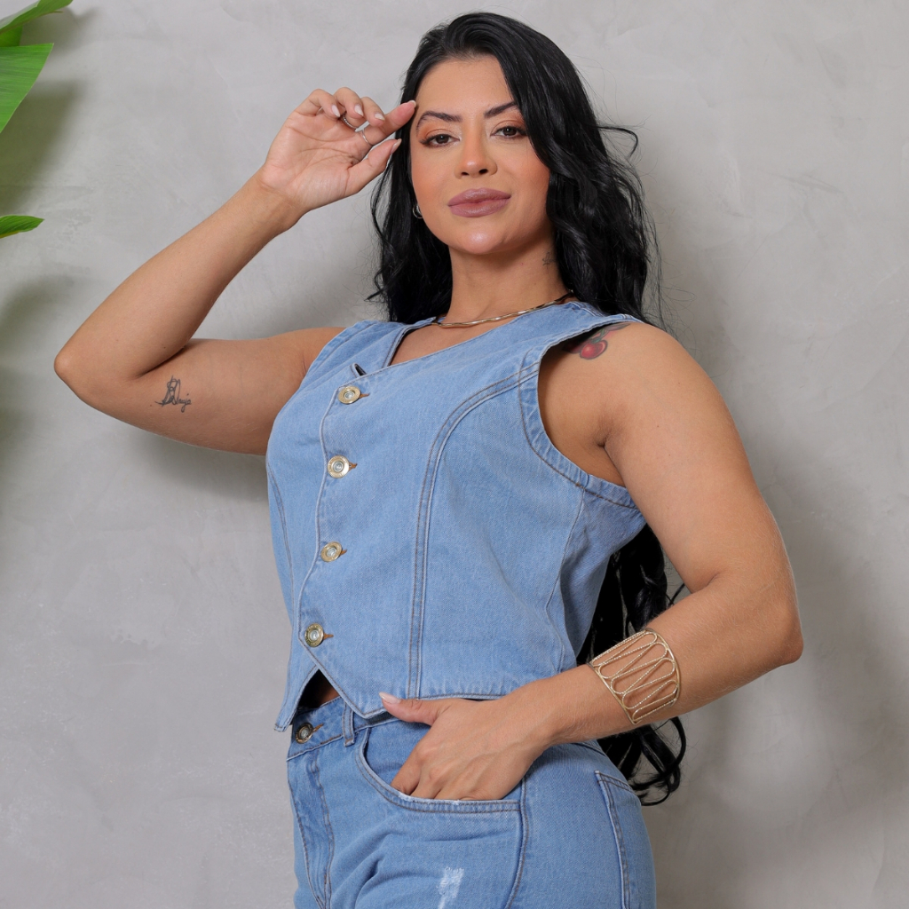 Colete Jeans Feminino Blusa Regata Denim Casual Verão com Botoes Tendencia