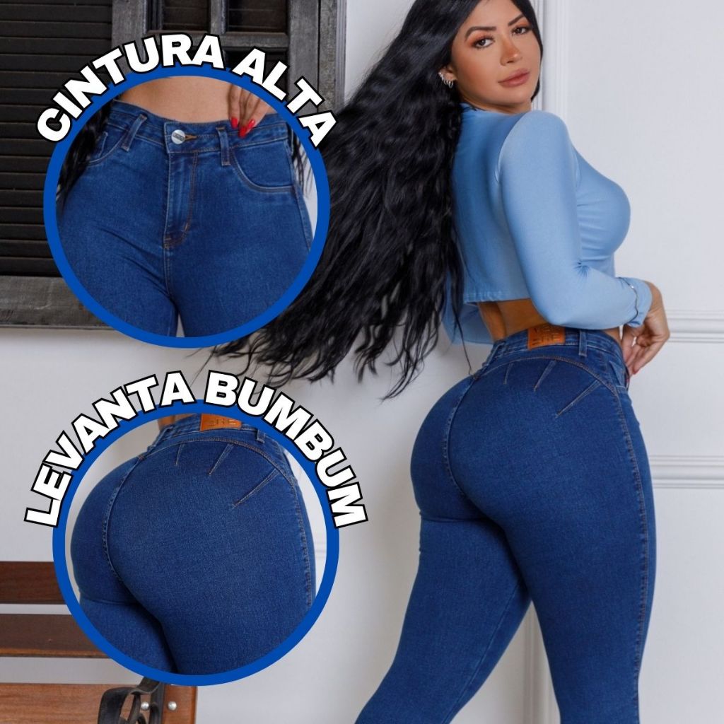 Calça Jeans Feminina Skinny sem Bolso Modeladora Pala Coração Muita Lycra Empina Bumbum Cintura Alta