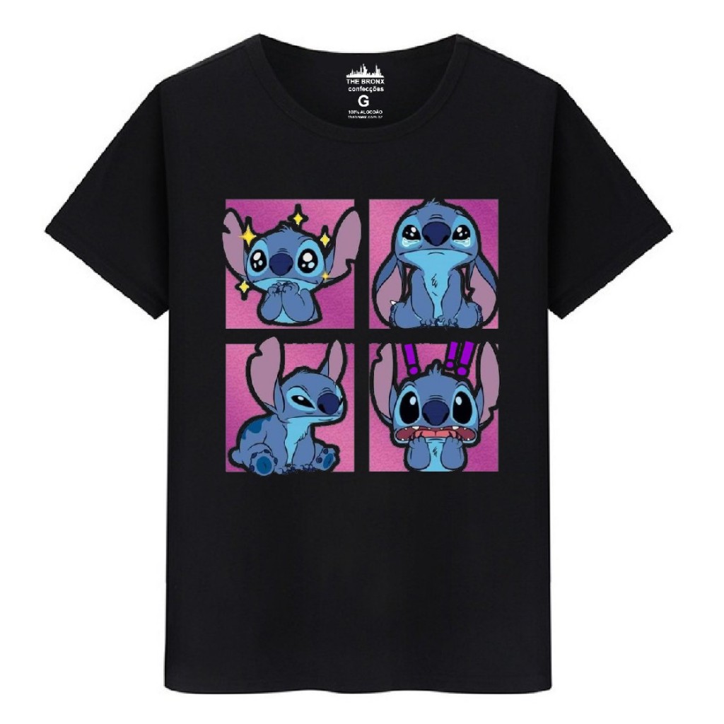 Camiseta masculina Algodão Premium Tradicional Plus Size Adulto Infantil G4 Stitch Emoções