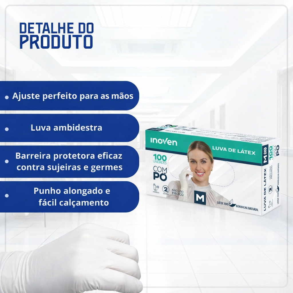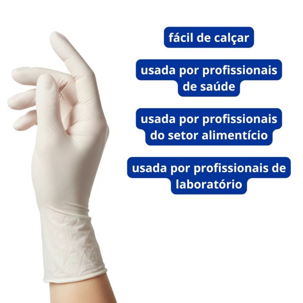 Luva de Látex Descartável Com Pó 100 Unidades Alta Resistência Uso Profissional